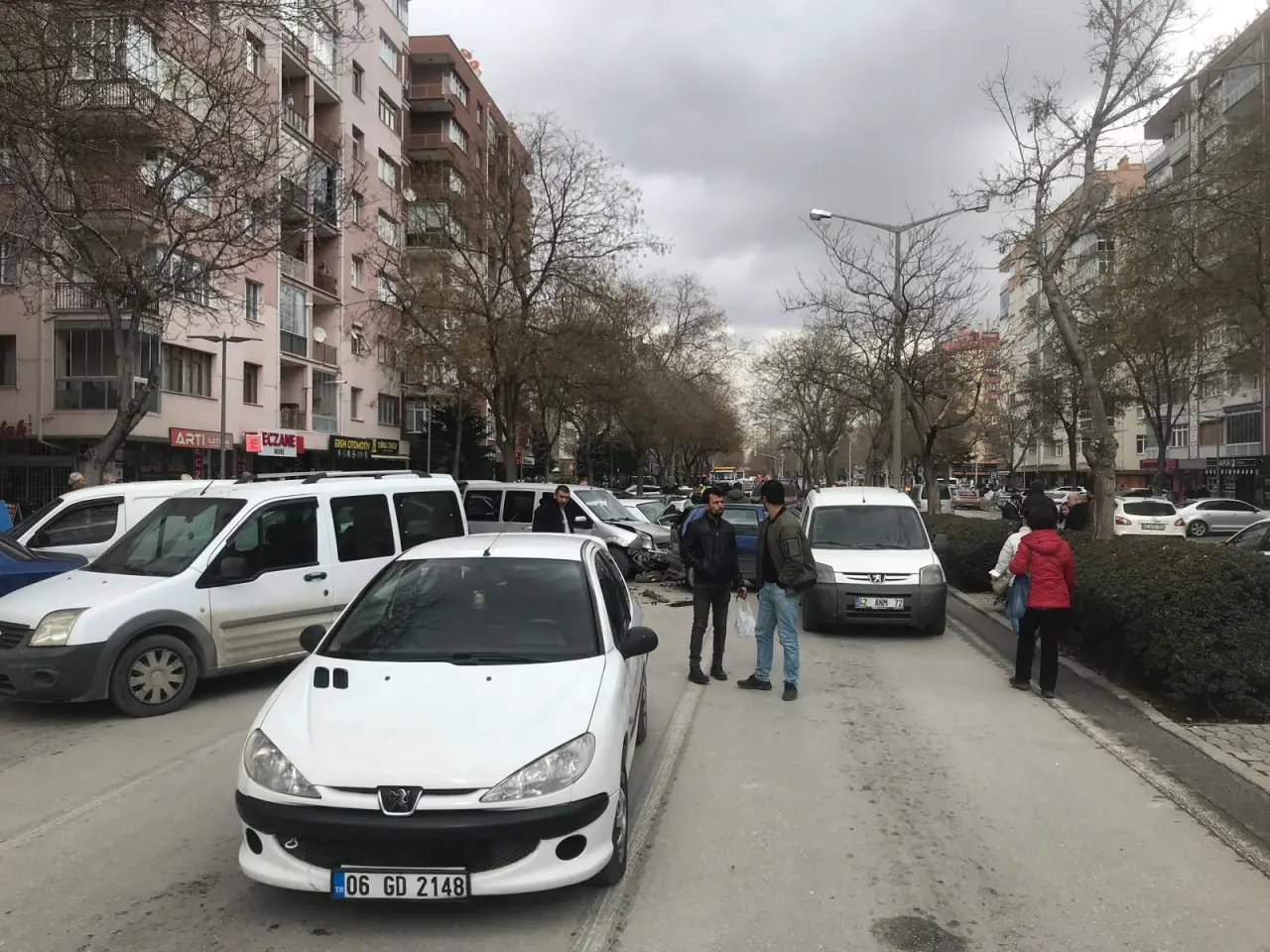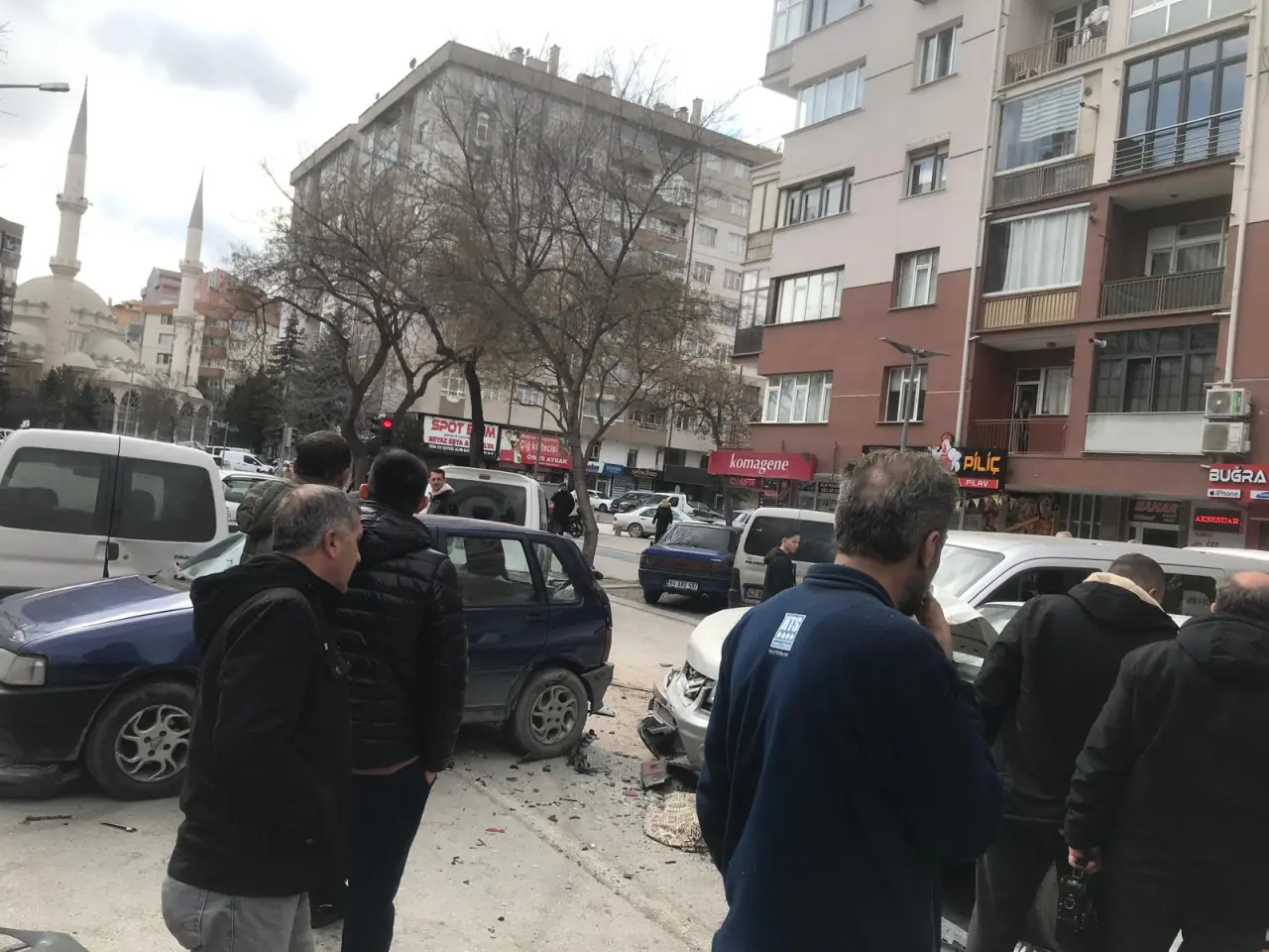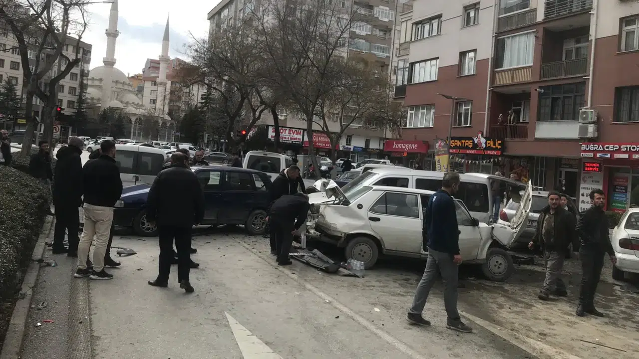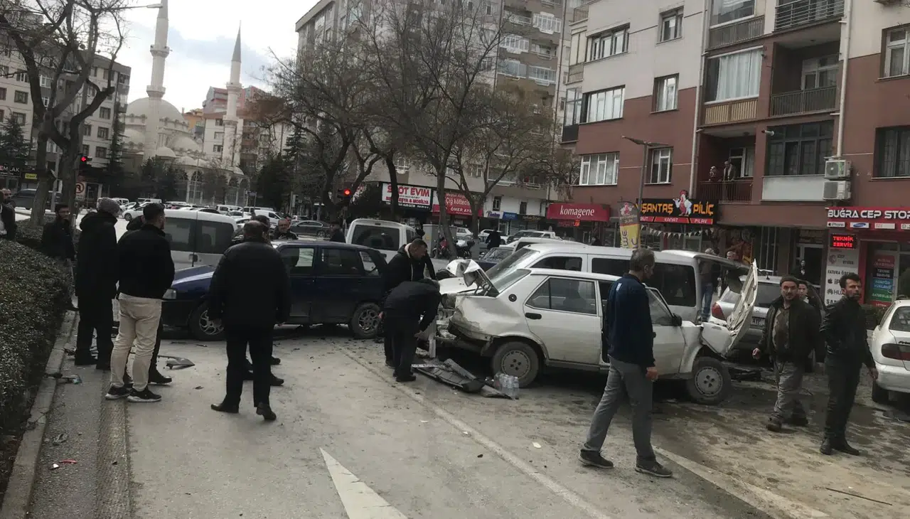Konya’nın Selçuklu ilçesinde Hulusi Balbay Caddesi ile Rauf Denktaş Caddesi bağlantısı üzerinde meydana gelen zincirleme trafik kazası, bölgede adeta savaş alanı görüntüsü oluşturdu. İddiaya göre iki aracın yarış yapması sonucu 8 aracın karıştığı zincirleme kaza meydana geldi.