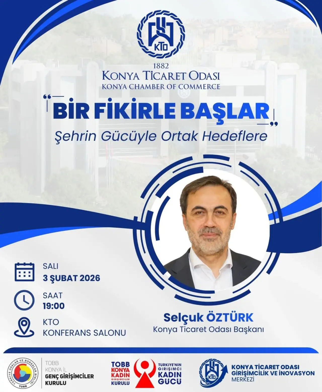 Konya Ticaret Odası (KTO) Başkanı Selçuk Öztürk, girişimcilik ekosistemine katkı sağlamak amacıyla düzenlenecek etkinlikte girişimcilerle bir araya gelecek. İş dünyasının ve girişimcilerin yoğun ilgi göstermesi beklenen buluşma, 3 Şubat 2026 Salı günü saat 19.00’da gerçekleştirilecek.
