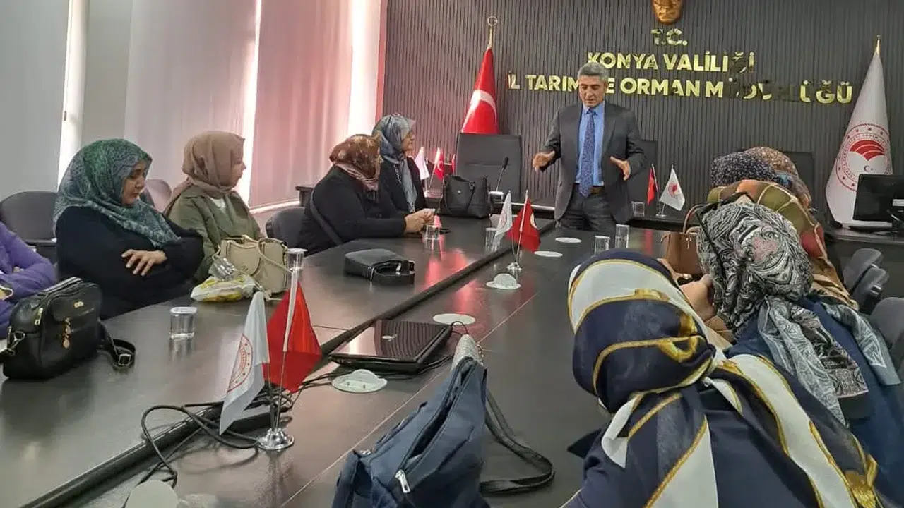 Konya İl Tarım ve Orman Müdürlüğü, İklim Değişikliği, Kuraklık ve Sulama Etkinliğinin Artırılması Programı kapsamında Sarayönü ilçesinden gelen kadın çiftçileri misafir etti. Program çerçevesinde, tarımsal üretimde suyun verimli kullanılmasına yönelik farkındalık oluşturmak için kapsamlı bir eğitim ve teknik inceleme gezisi düzenlendi.