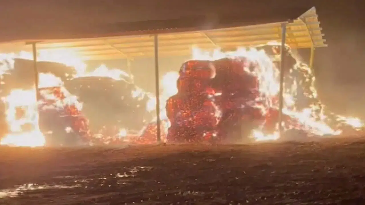 Kuskuncuk Mahallesi'nde, bir çiftlikte köz halindeki ateşin rüzgarın etkisiyle saman balyalarına sıçraması sonucu yangın çıktı. Yangında çok sayıda saman balyası yandı.
