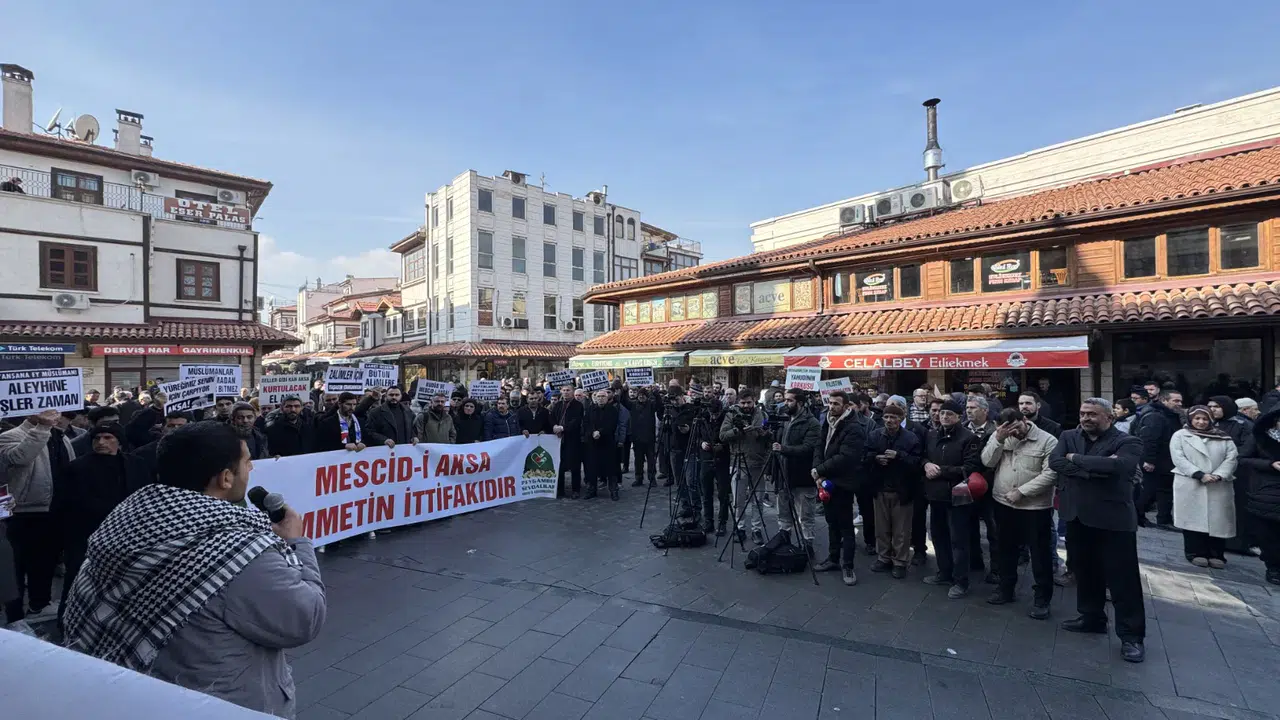 Konya Sivil Toplum Kuruluşları Platformu Başkanı Adem Ceylan, Aziziye Camisi önünde cuma namazı çıkışında toplanan kalabalığa seslenerek, Gazze'dekilerin Kudüs'ü kurtarmak için mücadele verdiğini söyledi.