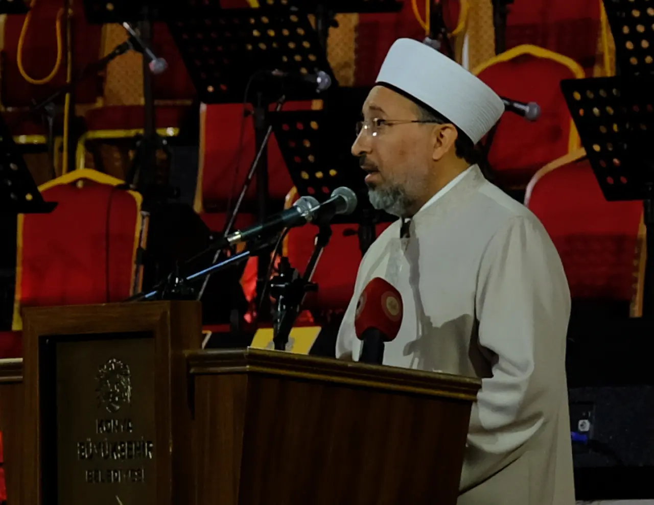 “Kadim tarihimize baktığımızda; devleti ve toplumu şekillendiren, değiştiren, dönüştüren, nihayetinde bunun da ötesine geçerek bütün insanlık için bir örnek, bir rehber konumuna erişen nice büyük insanımızın derin izlerini görürüz. Devlet adamlarından komutanlara, alimlerden sanatkarlara bu insan varlığımız öylesine zengin, etkileri öylesine büyüktür ki zaman onların izlerini örtememiş, verdikleri ilham hiç dinmemiş, açtıkları yolun yolcusu, gösterdikleri menzilin ziyaretçisi daima artmış, asla eksilmemiştir. Bu silsilenin içinde Hacı Bektaş Veli’den Yunus Emre’ye, Sadrettin Konevi’den, Sultan Veled’e, Şems-i Tebrizi’den Hoca Nasreddin’e gönül fatihlerimiz daima ayrı ve özel bir yere sahip olmuştur. Mevlana da bu gül bahçesinden bir güldür. Bu bahçenin kapısı bütün gönüllere ardına kadar açıktır. Ancak bilinsin ki gül deryamızdan bir dalın dahi kök salıp boy verdiği manevi topraktan koparılmasına izin vermeyiz. Mevlana’yı şair, Mesnevi’yi şiir kitabı, Sema’yı dans gösterisi diye göstermeye çalışanlar bilsin ki bizim olanı bize yabancılaştırmaya, bozmaya, çarpıtmaya Allah’ın izniyle kimsenin gücü yetmez. Değerlerimize bütünüyle sahip çıkmaya ve onları, bugün her zamankinden daha çok ihtiyaç duyduğunu açıkça gördüğümüz insanlıkla paylaşmaya devam edeceğiz. Günümüz dünyasının korku ve endişe deryasında çırpınan insanları, ‘Ümitsizlik tarafına gitme, nice ümit kapıları vardır. Karanlıklar semtine varma, nice güneşler parlamaktadır.’ diyerek Mevlana ocağına çağırıyorum.”