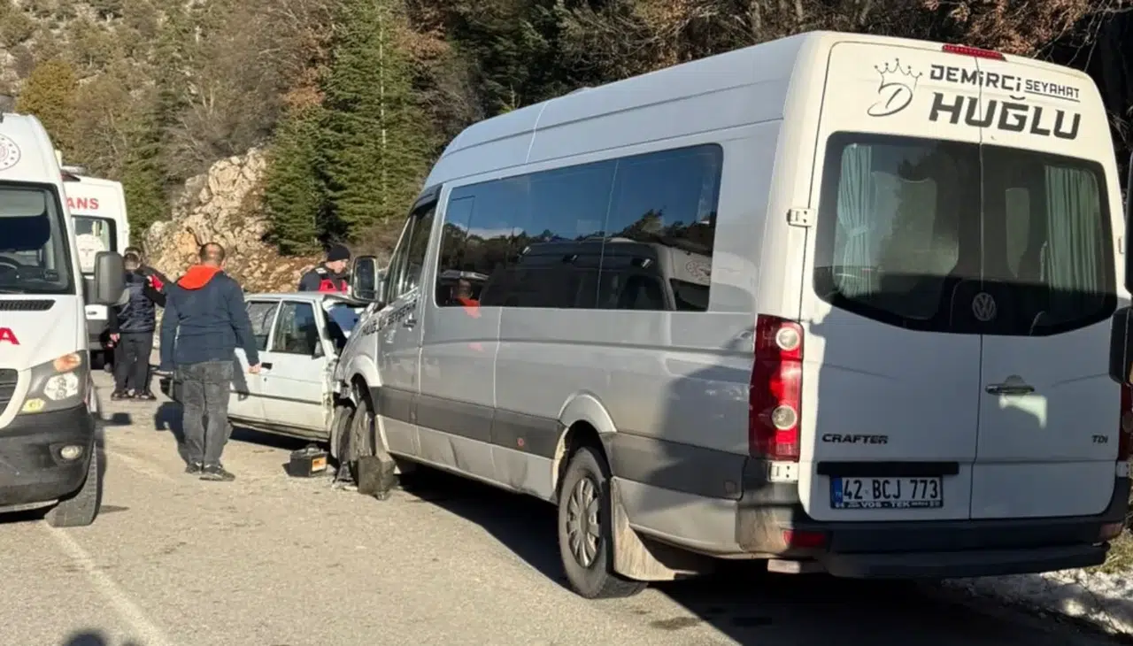 Abdullah S. idaresindeki 42 H 2458 plakalı otomobil, Huğlu Mahallesi girişinde karşı şeritte seyir halindeki R.Ç. idaresindeki 42 BCJ 773 plakalı minibüs ile çarpıştı.