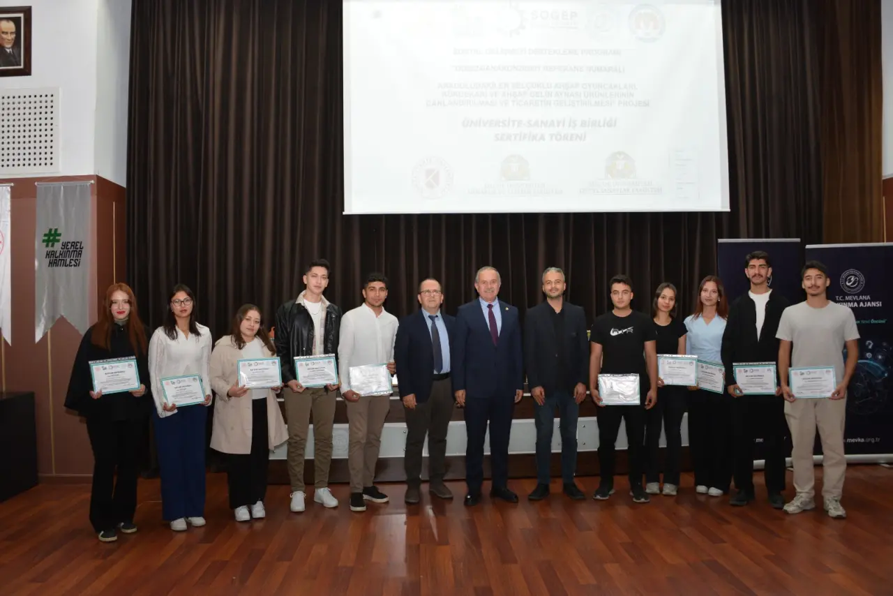 Sosyal Gelişmeyi Destekleme Programı Kapsamında Konya Mobilyacılar Esnaf ve Sanatkârlar Odası’nın yürüttüğü Anadolu’dakiler Selçuklu Ahşap Oyuncakları, Kündekari, ve Ahşap Gelin Aynası ürünlerinin canlandırılması ve ticaretin geliştirilmesi projesi kapsamında Altı hafta süren Mobilya alanında Mesleki Eğitim-E-Ticaret-Girişimcilik eğitimlerine katılan 118 kursiyer sertifikalarını düzenlenen törenle aldılar.