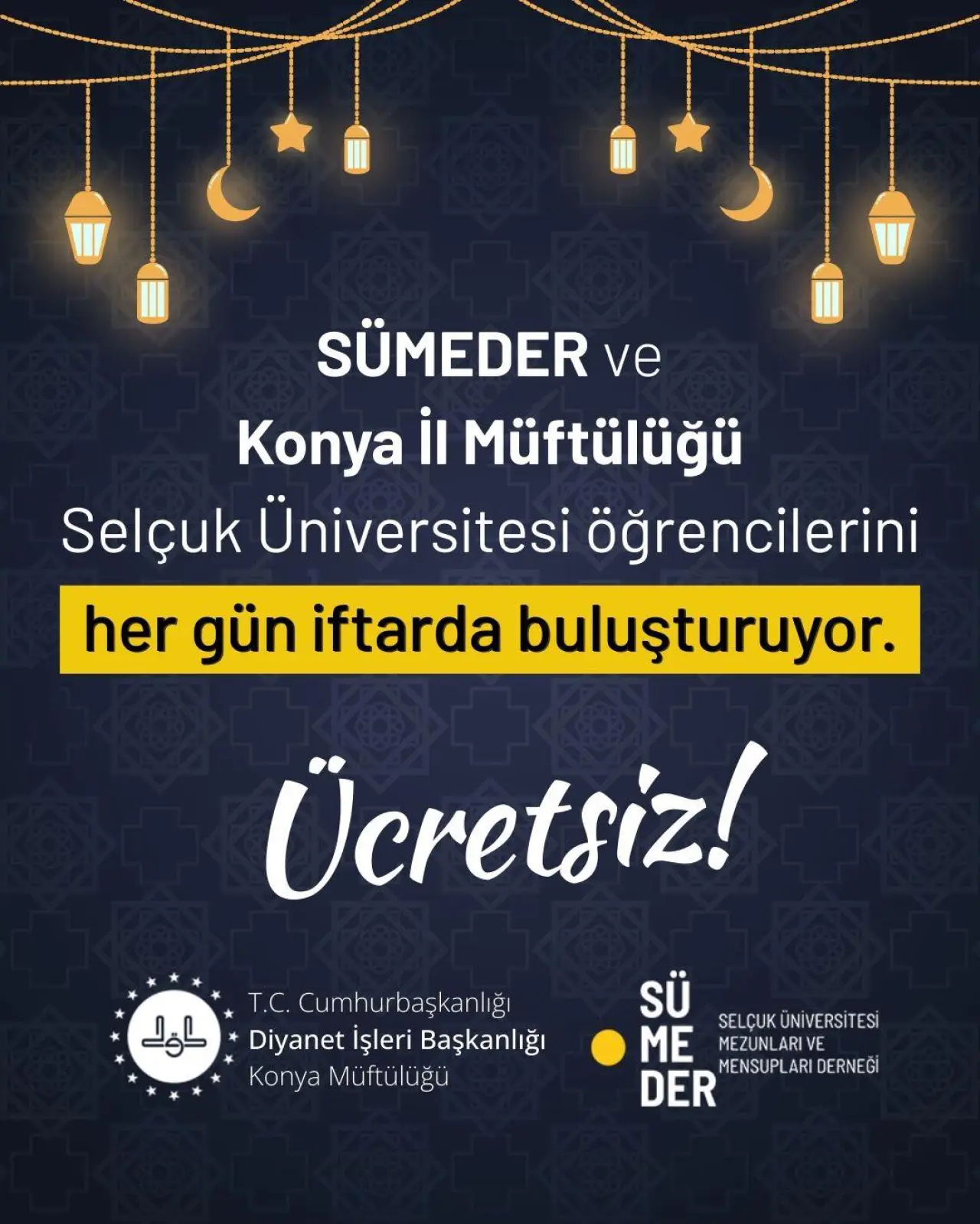 Selçuk Üniversitesi öğrencileri, SÜMEDER ve Kampüs Diyanet Gençlik Merkezi iş birliğiyle ramazan ayının ruhunu kampüste yaşatıyor. Her gün düzenlenen iftar programları, öğrencilerin bir araya gelerek paylaşmanın, dayanışmanın ve kardeşliğin tadını çıkarmasına vesile oluyor.
