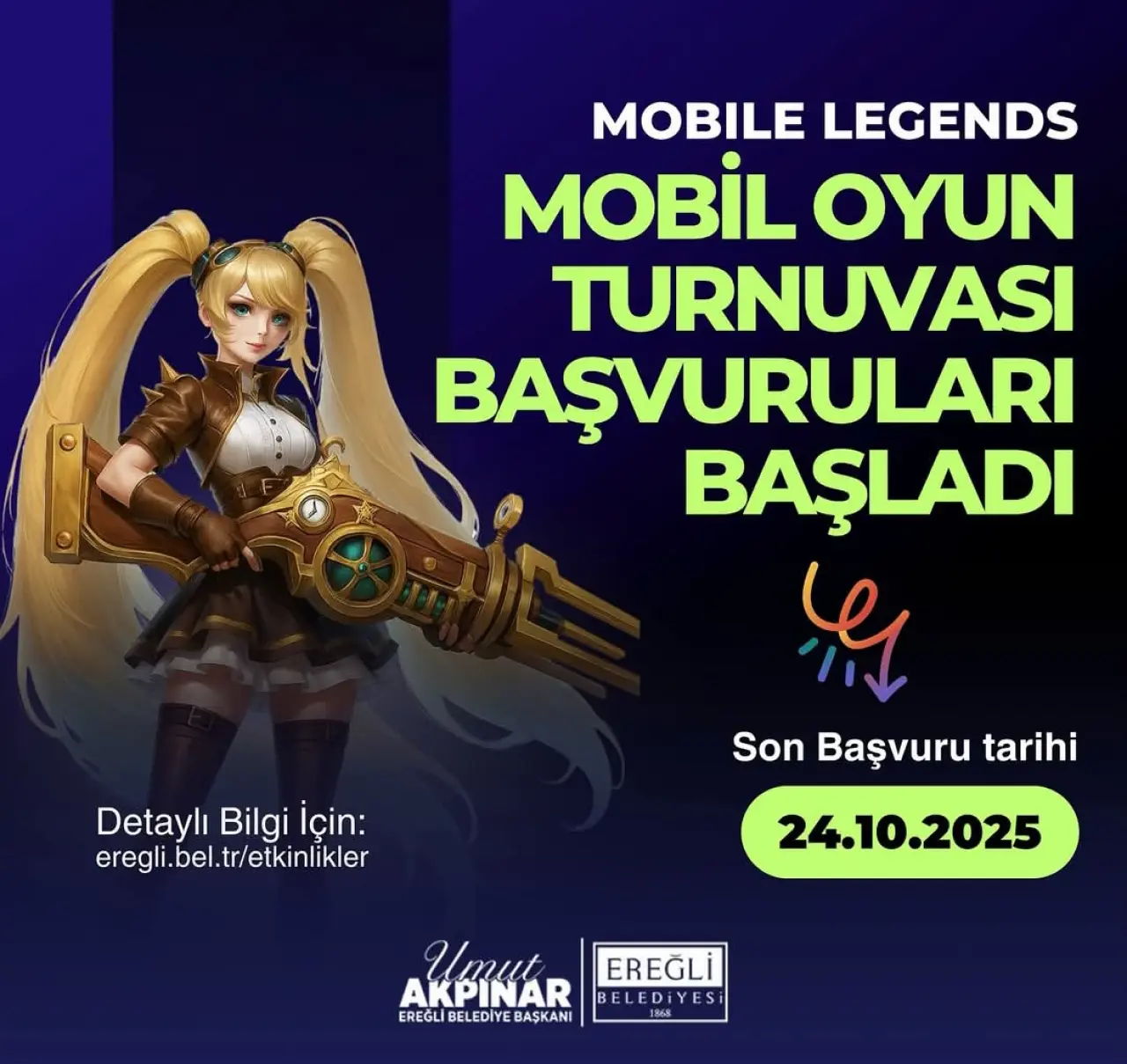 Ereğli Belediyesi, gençlere yönelik eğlenceli bir etkinliğe daha imza atıyor. Mobile Legends Mobil Oyun Turnuvası için başvurular başladı.