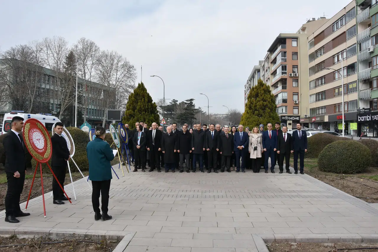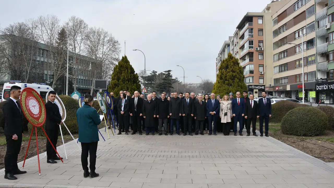 14 Mart Tıp Bayramı, Konya’da düzenlenen törenle kutlandı. İl Sağlık Müdürlüğü tarafından organize edilen program kapsamında sağlık çalışanları ve yöneticiler, Atatürk Anıtı’na çelenk bıraktı.