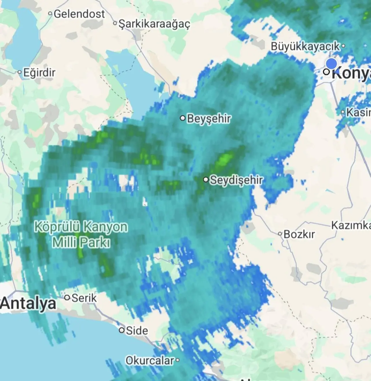 Demir’in değerlendirmesine göre, Seydişehir – Beyşehir – Cihanbeyli hattı üzerinde şu an hafif şiddette bir yağış hattı etkili. Yağışların ilerleyen saatlerde Konya merkez ile Altınekin istikametine doğru genişleyerek etkisini artırması bekleniyor.