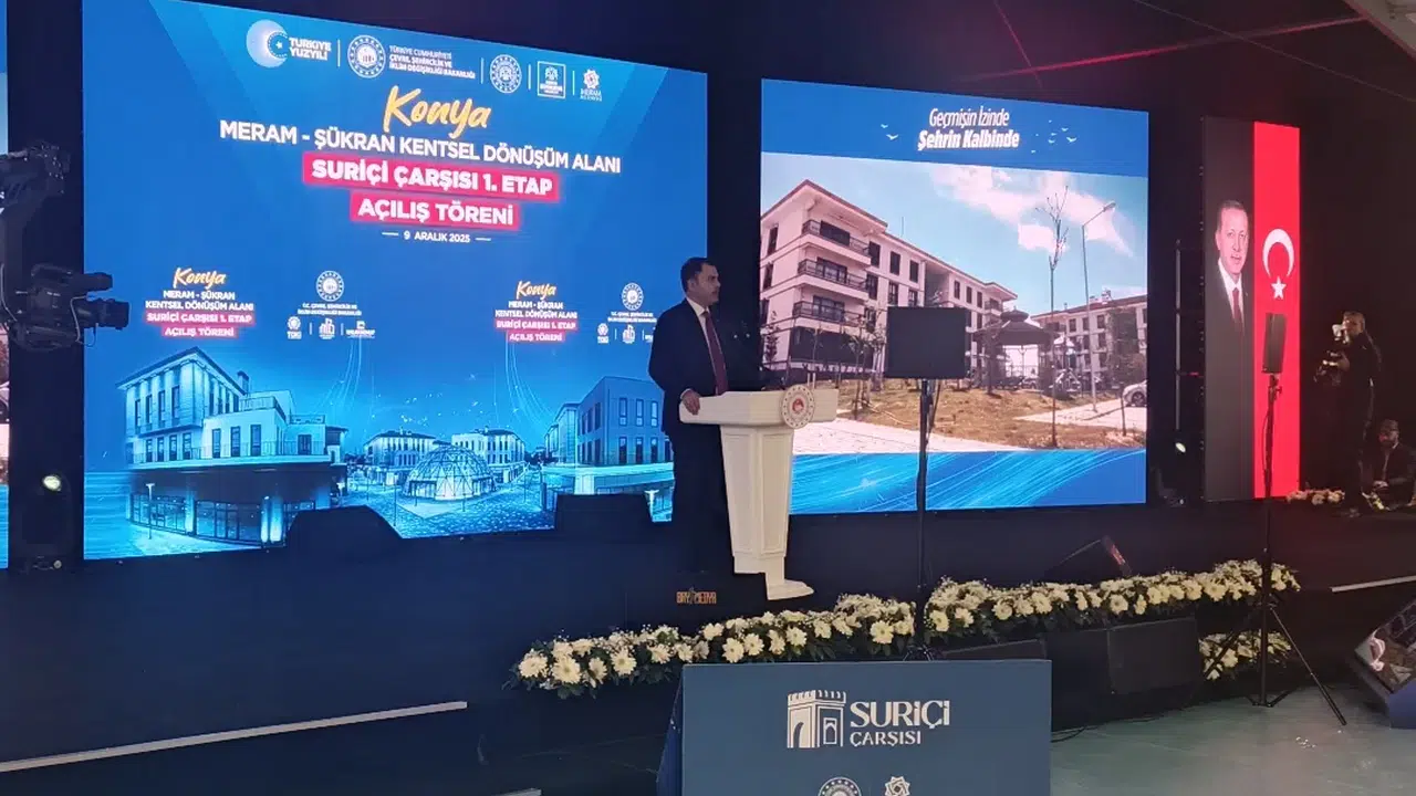 Konya’da tarihi dokuyu yeniden ayağa kaldıracak Sur İçi Kentsel Dönüşüm Projesi’nin açılışı gerçekleştirildi. Törende konuşan Çevre, Şehircilik ve İklim Değişikliği Bakanı Murat Kurum, projeyle birlikte Konya’nın tarihi mirasına önemli bir yatırımı daha hayata geçirdiklerini ifade etti.