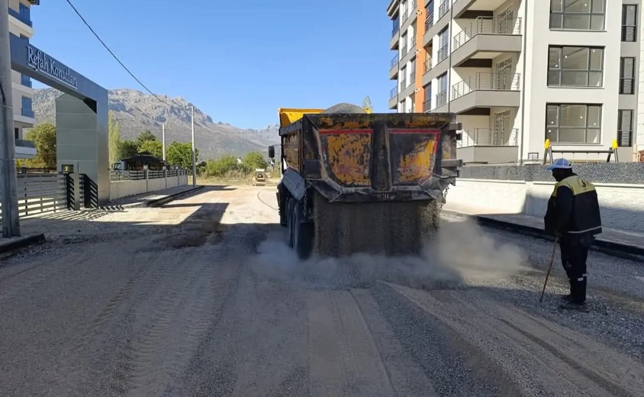 Ulukapı Mahallesi’nde asfalt öncesi malzeme serimi,