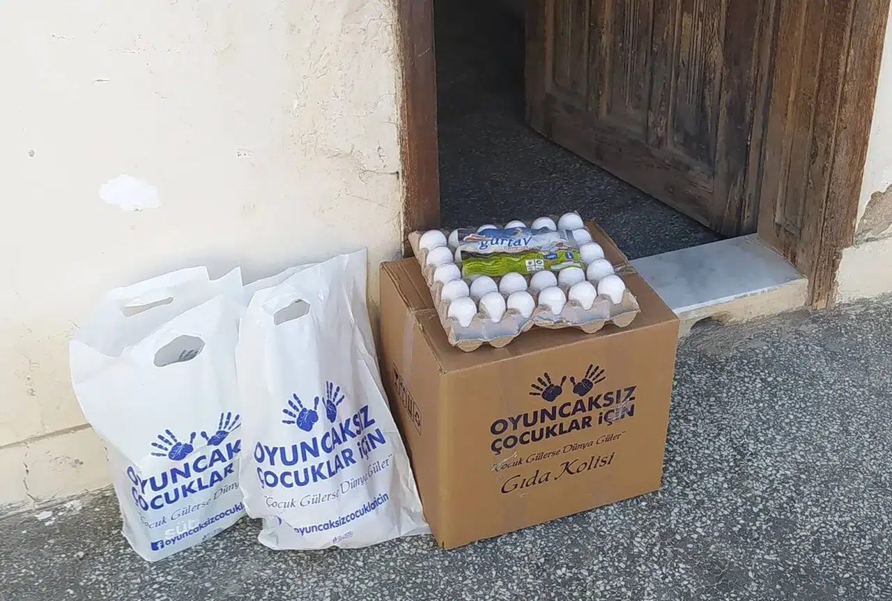 Oyuncaksız Çocuklar İçin İnsani Yardım Derneği, hayırseverlerin emanet ettiği gıda kolileri, kahvaltı setleri, et ve yumurta yardımlarını altı farklı ihtiyaç sahibi aileye ulaştırarak gönüllere dokundu. Gerçekleştirilen yardım çalışması, yalnızca sofralara değil, kalplere de umut taşıdı.