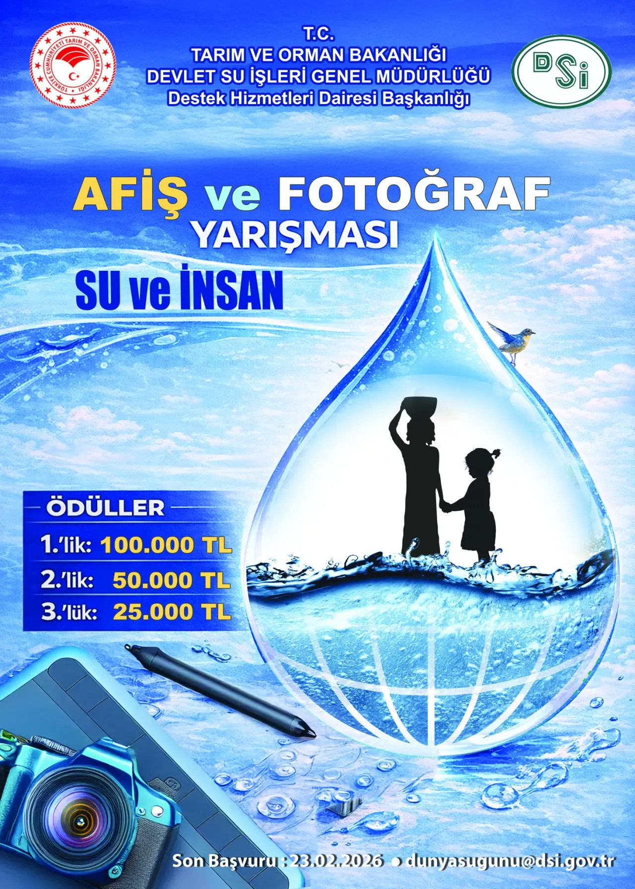 Devlet Su İşleri Genel Müdürlüğü tarafından her yıl 22 Mart Dünya Su Günü kapsamında düzenlenen yarışma için 2026 başvuruları açıldı. 2026 tema konusu “Su ve Cinsiyet” olarak belirlendi. Yarışma; afiş, fotoğraf ve kısa film kategorilerinde gerçekleştirilecek. Başvuru koşulları ve gerekli dokümanlar DSİ tarafından yayımlandı.