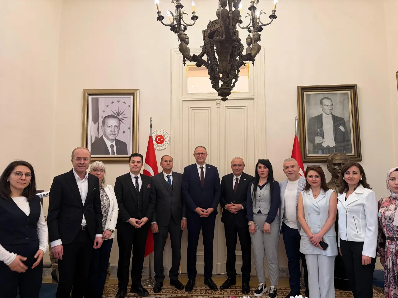 Ziyaretin en dikkat çeken görüşmelerinden biri de T.C. Kahire Büyükelçiliği’nde gerçekleşti. VİAD heyeti, Türkiye Cumhuriyeti Kahire Büyükelçisi Salih Mutlu Şen ile bir araya gelerek ticari diplomasi, bölgesel gelişmeler ve Türkiye–Mısır ekonomik ilişkilerinin geleceğine dair kapsamlı değerlendirmelerde bulundu. Görüşmede, iki ülke arasındaki ilişkilerin iş dünyası aracılığıyla daha da güçlendirilmesi gerektiği vurgulandı.