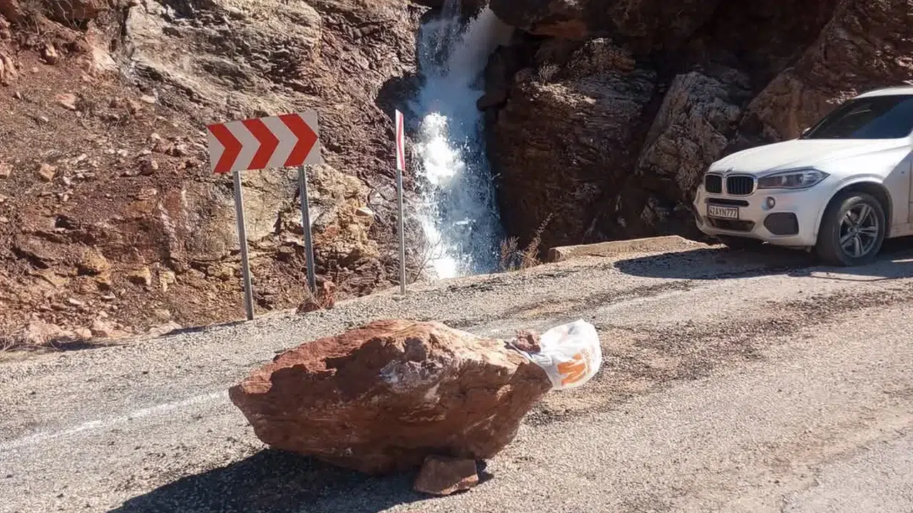 Edinilen bilgilere göre, dağdan kopan büyük bir kaya parçası yola düşerek sürücülere zor anlar yaşattı. Olay anında yoldan geçen araçların son anda durarak olası bir kazayı önlediği öğrenildi.