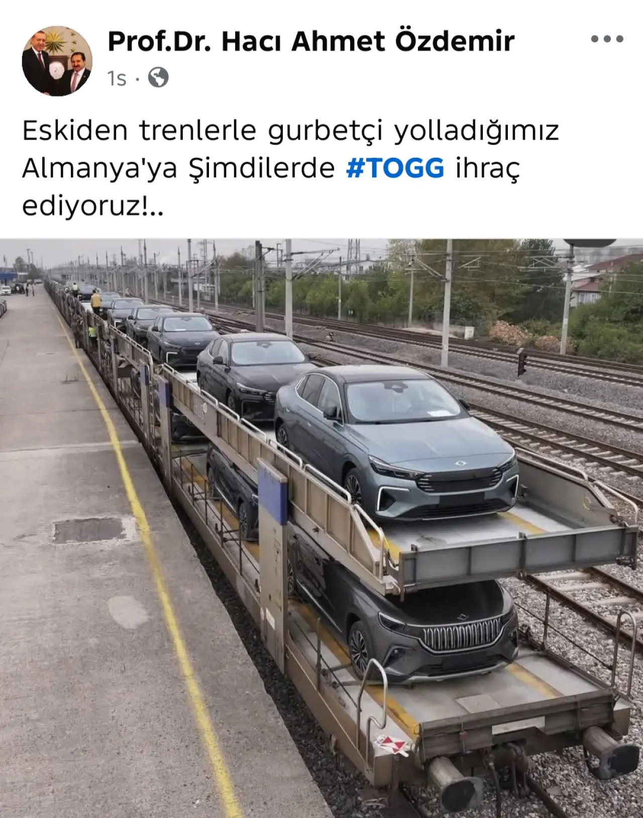 Özdemir paylaşımında, “Eskiden trenlerle gurbetçi yolladığımız Almanya’ya, şimdilerde #TOGG ihraç ediyoruz!”