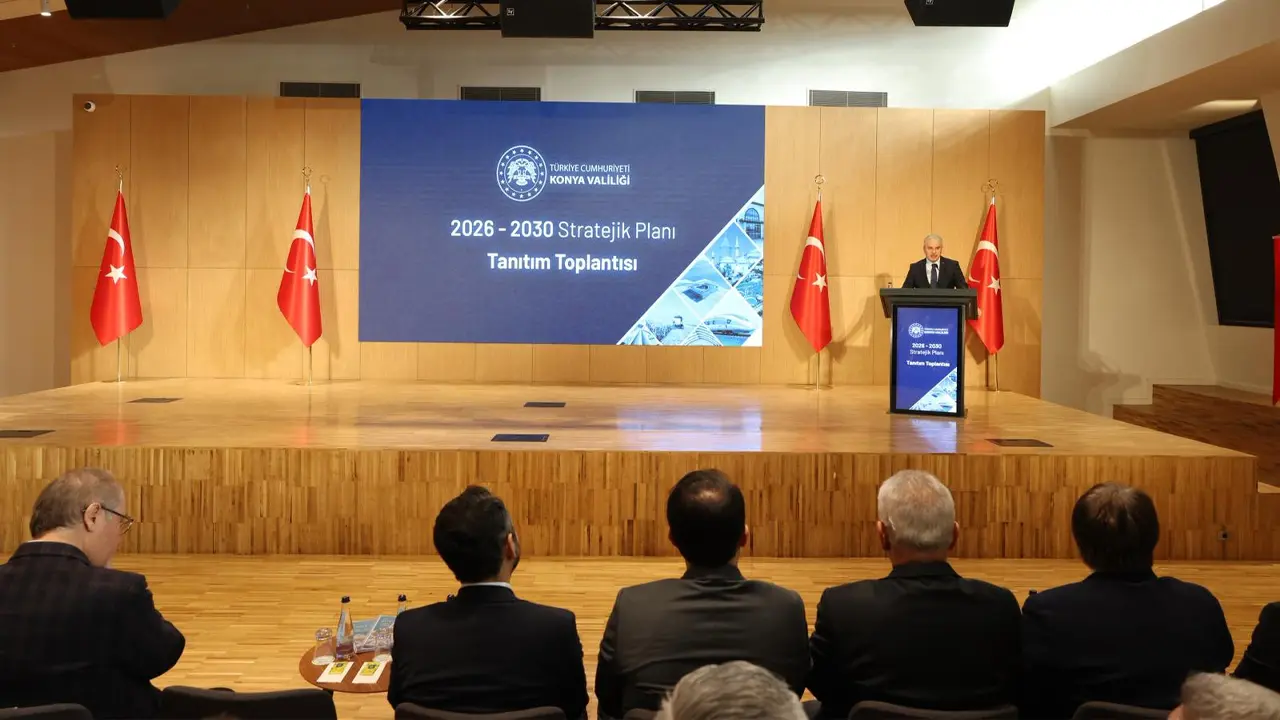 Konya Valiliği tarafından hazırlanan ve kentin 2026–2030 dönemine ilişkin hedeflerini ortaya koyan Stratejik Plan, düzenlenen tanıtım toplantısıyla kamuoyuna açıklandı. Taş Bina Kültür Sanat’ta gerçekleştirilen toplantıya Vali İbrahim Akın başta olmak üzere yerel yöneticiler, kurum müdürleri ve yargı temsilcileri katıldı.