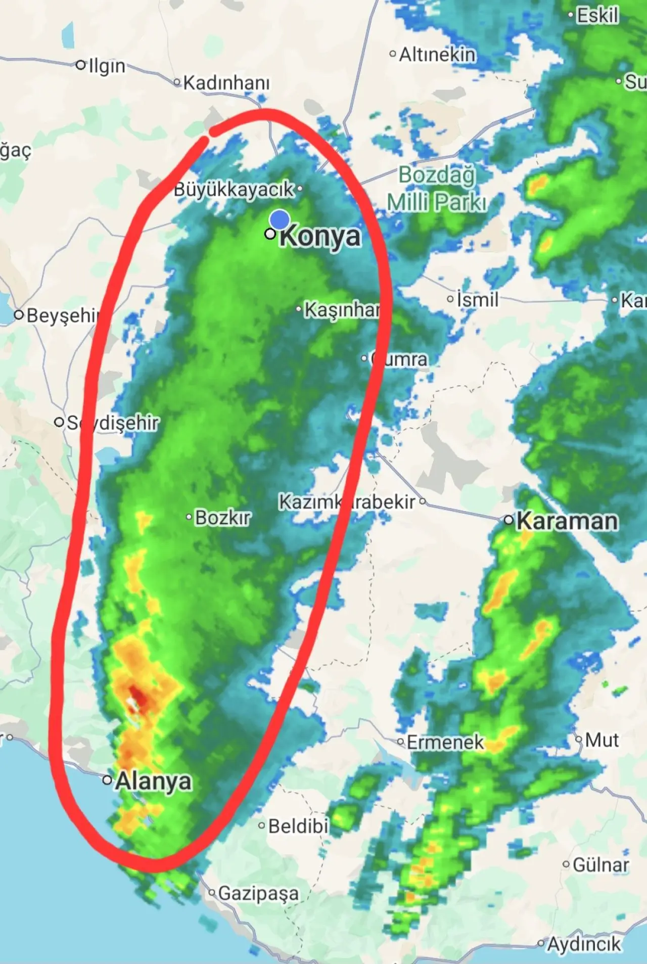 Güneysınır, Çumra, Karapınar, Karatay kırsalı, Emirgazi ve Ereğli hattında etkili olmasının beklendiği aktarıldı.