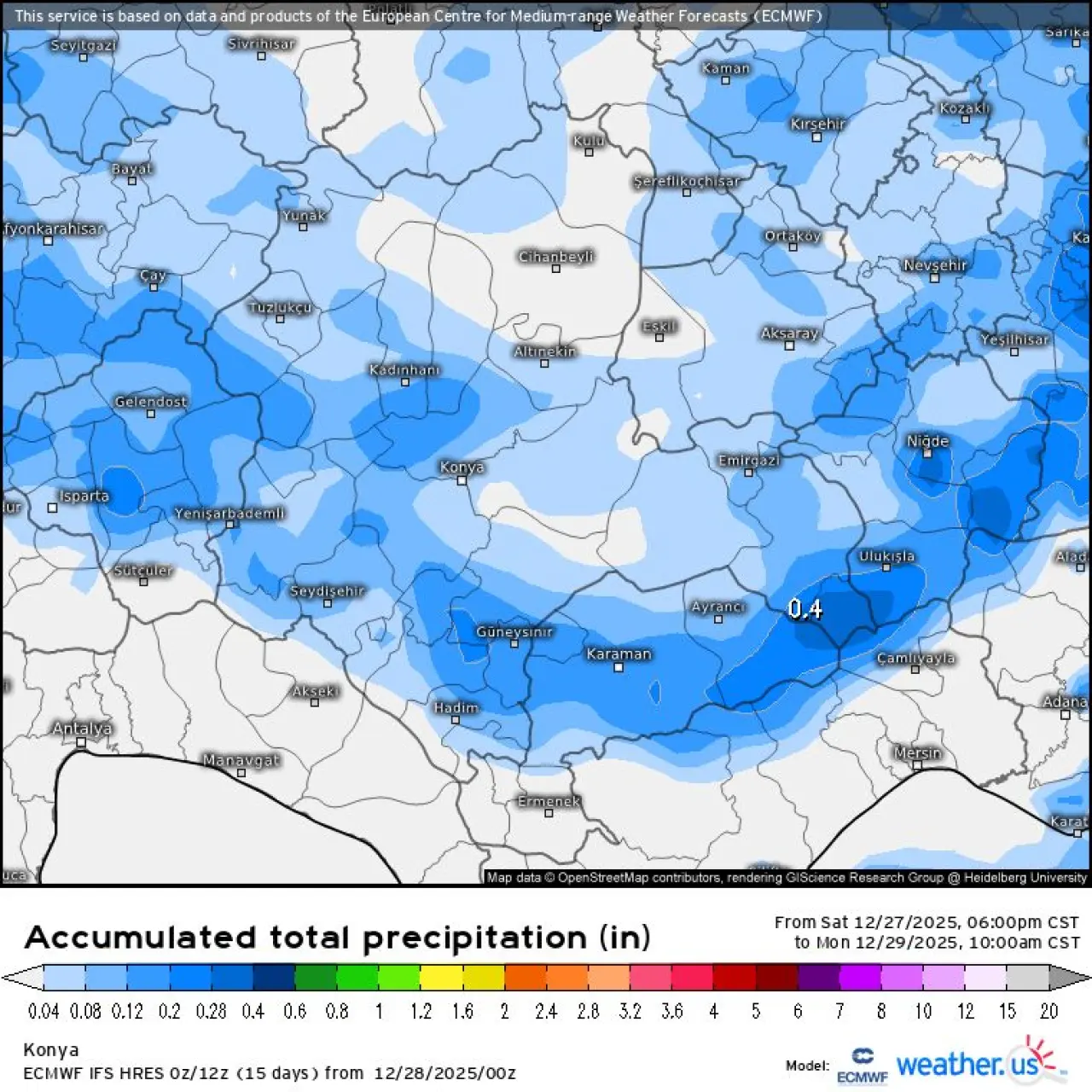 Yapılan açıklamaya göre, kar yağışının hafif şiddette etkili olması beklenirken, soğumanın en yüksek seviyeye ulaştığı zaman diliminde gerçekleşmesi nedeniyle 1 ila 5 santimetre arasında kar örtüsü oluşma ihtimali bulunuyor. Özellikle Hadim, Taşkent, Sarıveliler ve Güneysınır hattında 5 santimetrenin üzerinde örtü oluşabileceği ifade edildi.