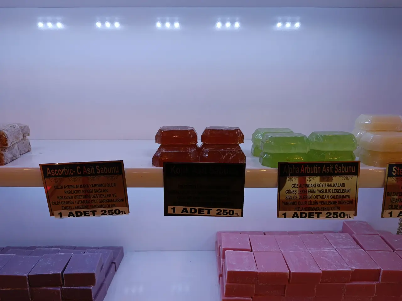 Doğal içerikli sabunların cilt sağlığı açısından tekrar değer kazandığı dönemde; dükkânda gözenek sıkılaştırıcı, renk tonu eşitleyici, siyah nokta giderici ve parlak görünüm sağlayan pek çok farklı sabun çeşidi satışa sunuluyor.