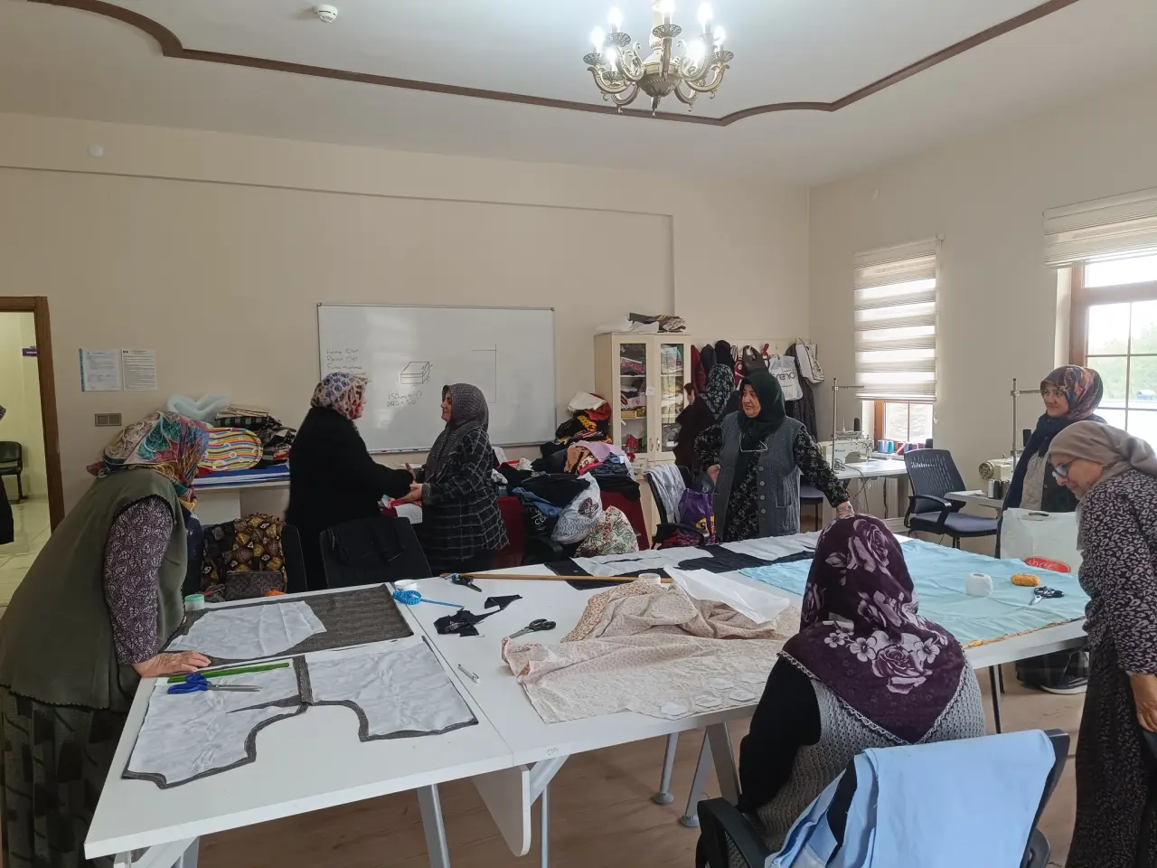 Bu kapsamda Ahırlı Aile Sanat ve Eğitim Merkezi bünyesinde düzenlenen dikiş kursu da yoğun ilgi görüyor. Kursiyerler, kalıp hazırlamadan dikime kadar uzanan süreçte hem teorik hem de pratik eğitim alarak üretim becerilerini geliştiriyor.