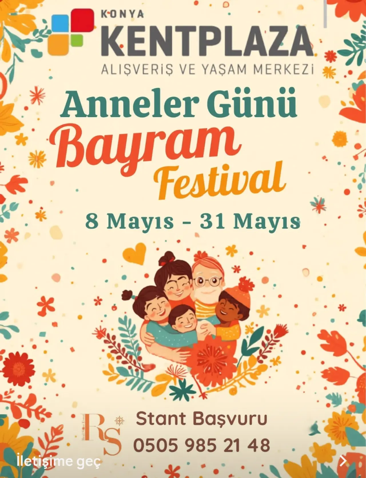 Konya’nın alışveriş ve yaşam merkezi Kentplaza, 8 Mayıs – 31 Mayıs tarihleri arasında düzenleyeceği “Anneler Günü Bayram Festivali” ile ziyaretçilerini birbirinden özel etkinliklerle buluşturacak.