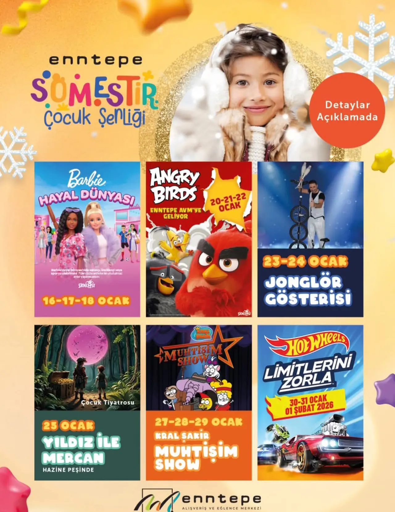 Enntepe AVM yetkilileri, tüm etkinliklerin ücretsiz olduğunu belirterek, sömestir tatilinde aileleri ve çocukları Enntepe’ye davet etti.