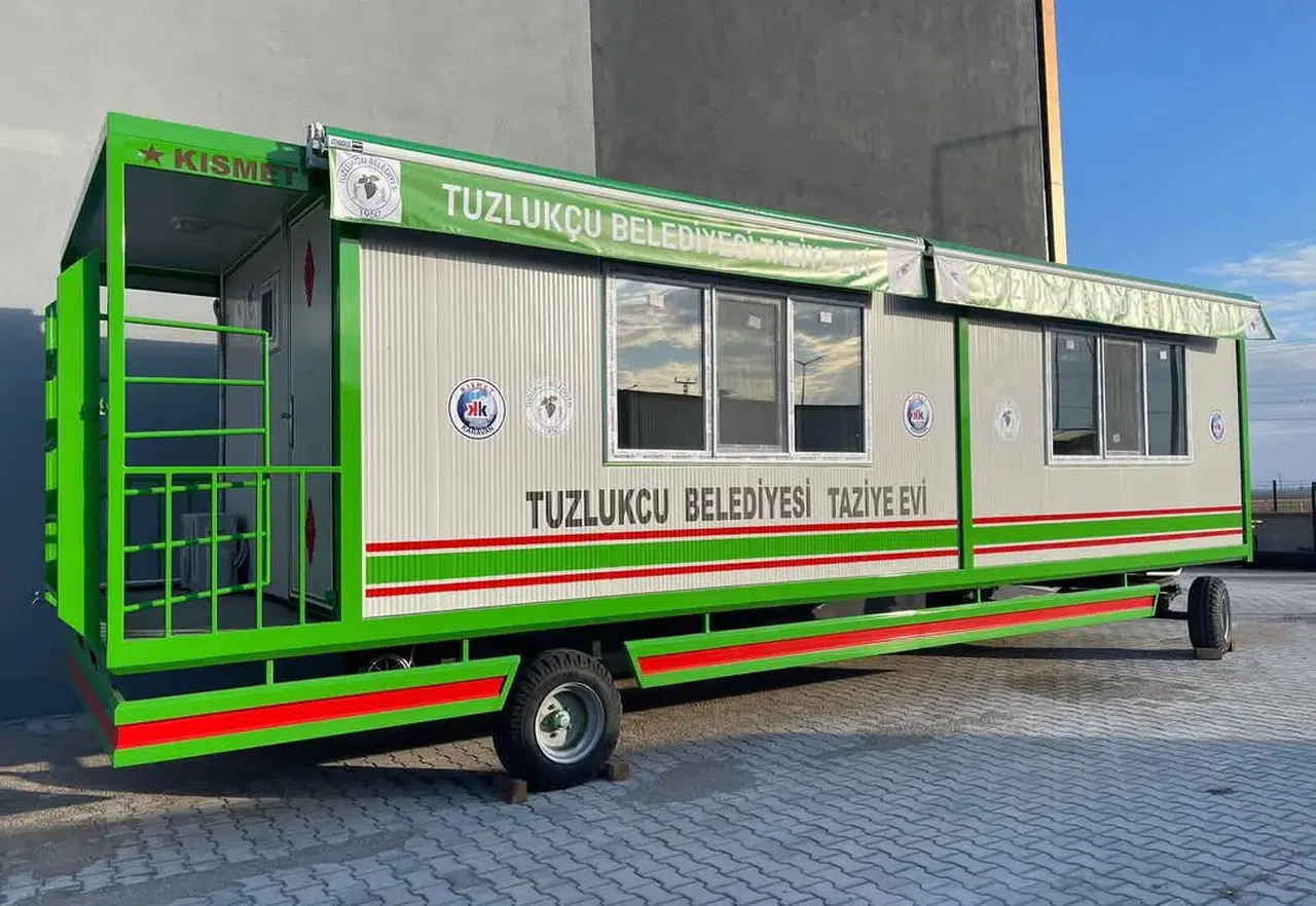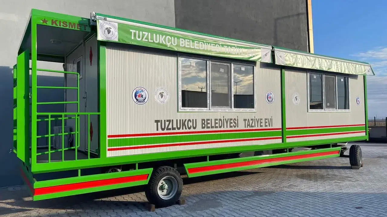 Tuzlukçu Belediyesi, vatandaşların acılı günlerinde yanında olmak amacıyla önemli bir projeyi hayata geçiriyor. İlçe merkezi ve mahallelerde hizmet verecek olan römork tipi Taziye Evi, modern donanımıyla çok yakında halkın kullanımına sunulacak.
