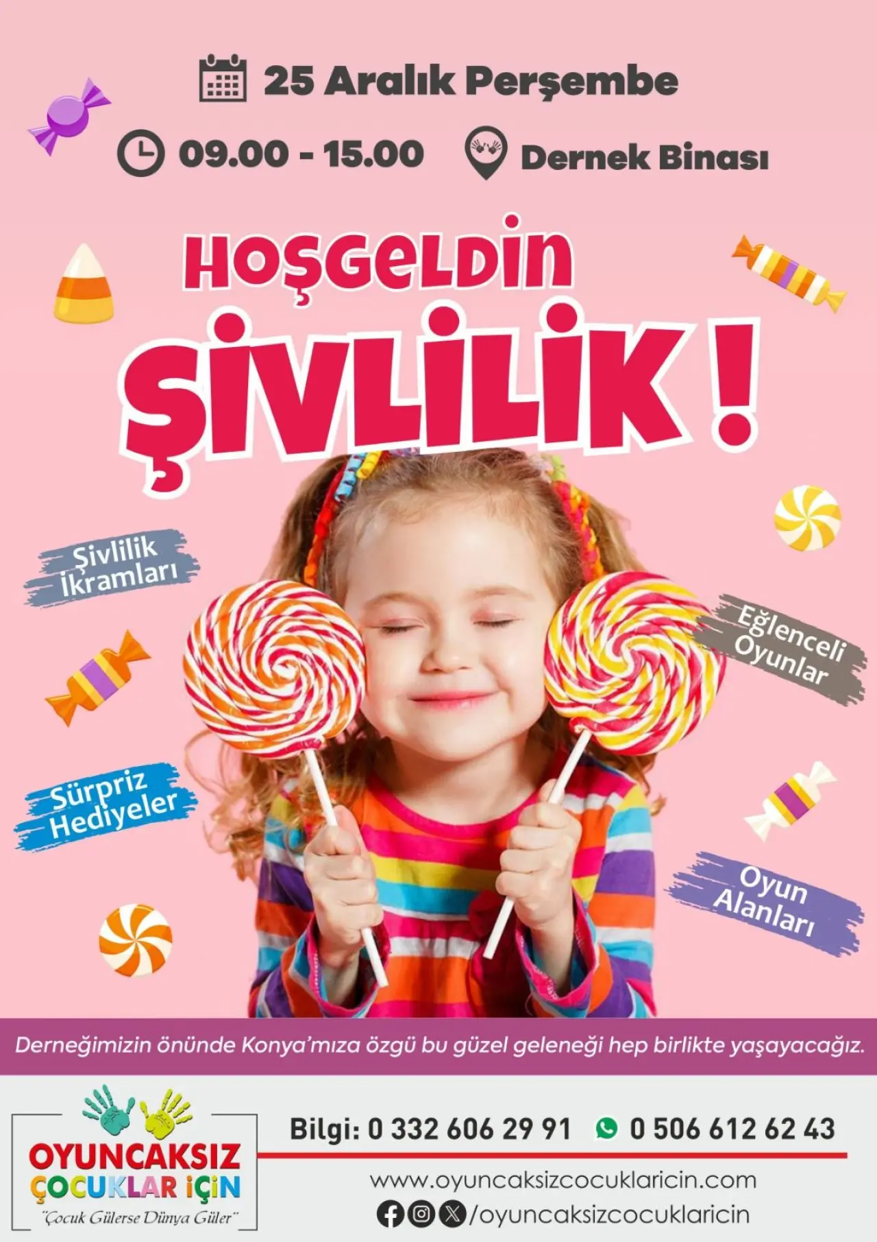 25 Aralık Perşembe günü, saat 09.00 ile 15.00 arasında dernek binası önünde gerçekleştirilecek etkinlikte, çocuklar ve aileler şivlilik coşkusunu hep birlikte yaşayacak.