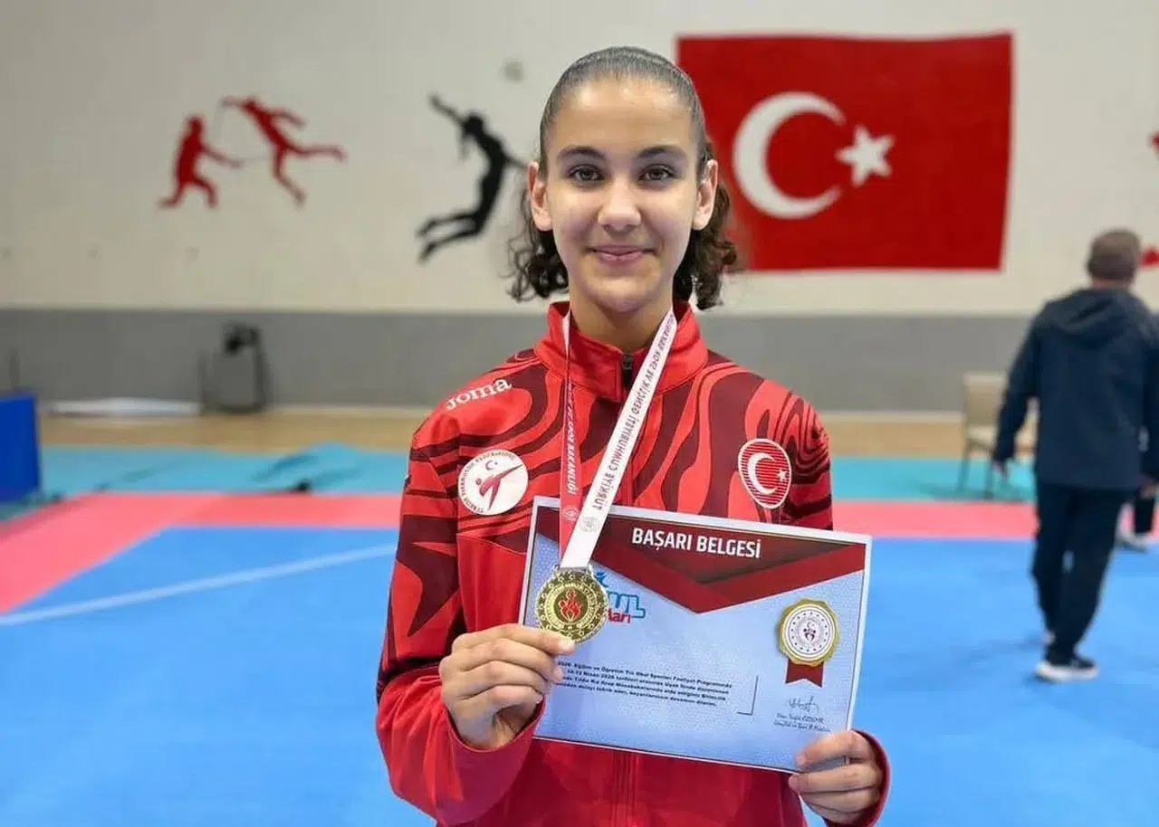 Uşak’ta gerçekleştirilen organizasyonda 59 kg kategorisinde birincilik elde eden Merve Telli, altın madalyanın sahibi oldu. Gösterdiği performansla dikkat çeken genç sporcu, şehrine büyük bir gurur yaşattı.