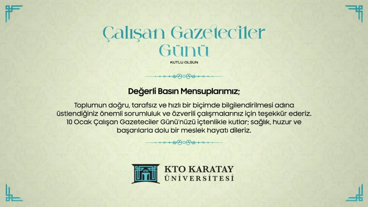 “Toplumun doğru, tarafsız ve hızlı bir biçimde bilgilendirilmesi adına üstlendiğiniz önemli sorumluluk ve özverili çalışmalarınız için teşekkür ederiz. 10 Ocak Çalışan Gazeteciler Günü’nüzü içtenlikle kutlar; sağlık, huzur ve başarılarla dolu bir meslek hayatı dileriz.”