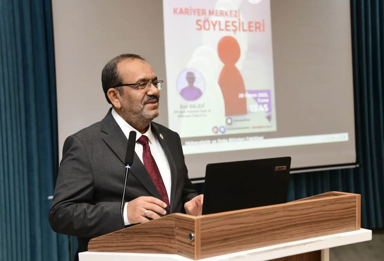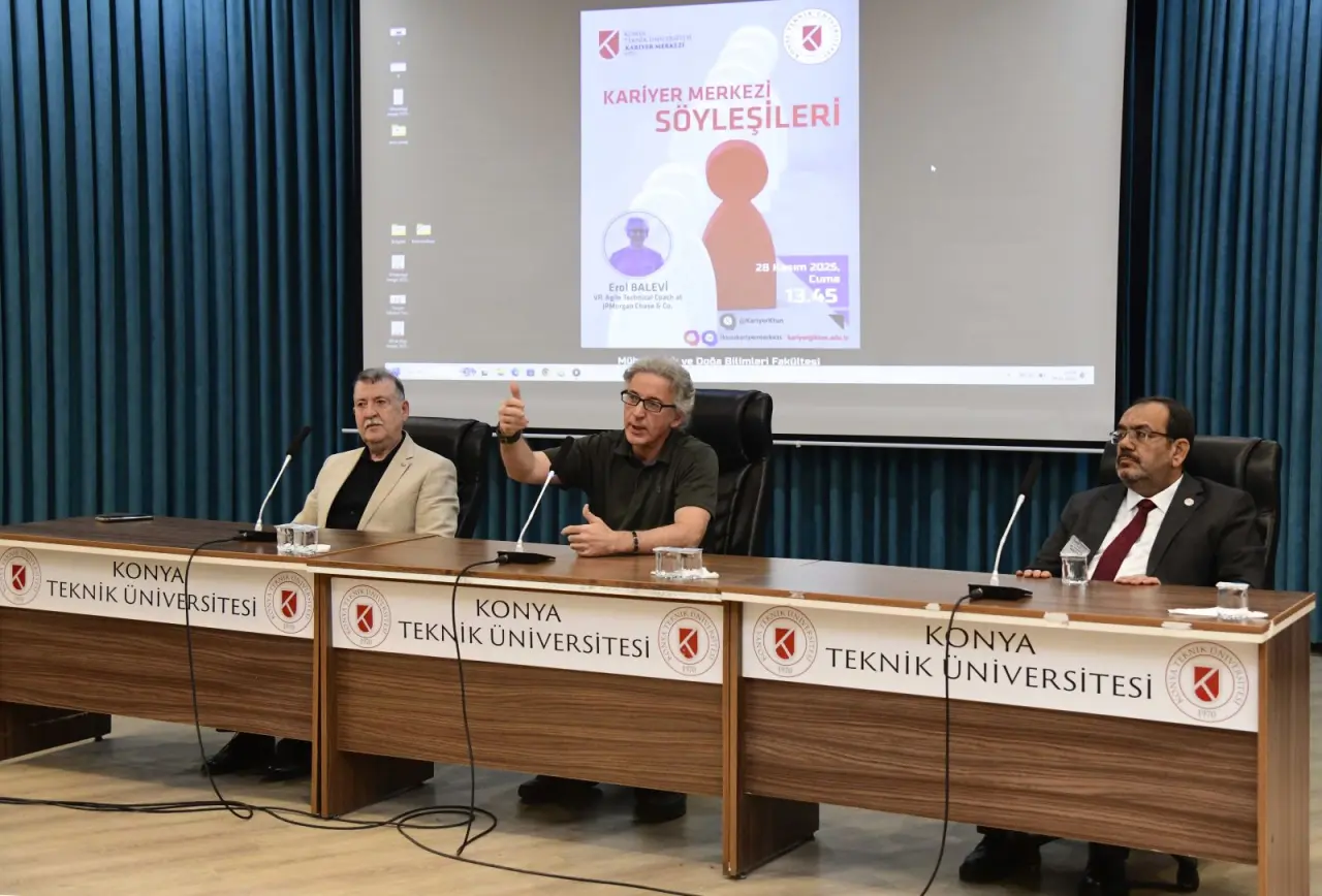 Söyleşide Erol Balevi, KTÜN Rektörü Prof. Dr. Osman Nuri Çelik ile birlikte öğrencilerden gelen soruları yanıtladı ve kariyer yolculuğuna dair değerli deneyimlerini paylaştı. 26 yıldır yurtdışında yaşayan ve daha önce Microsoft ile AT&T’de görev yapan Balevi; Amerika’da öğrenci olarak bulunmanın püf noktalarını, çalışma hayatının dinamiklerini ve sosyal yaşamın gerçeklerini anlattı. Dil yeterliliği, kolektif çalışma kültürü, disiplin ve özgüven gibi kavramların önemine vurgu yaptı. Öğrencilerden gelen soruları da detaylı şekilde yanıtladı.