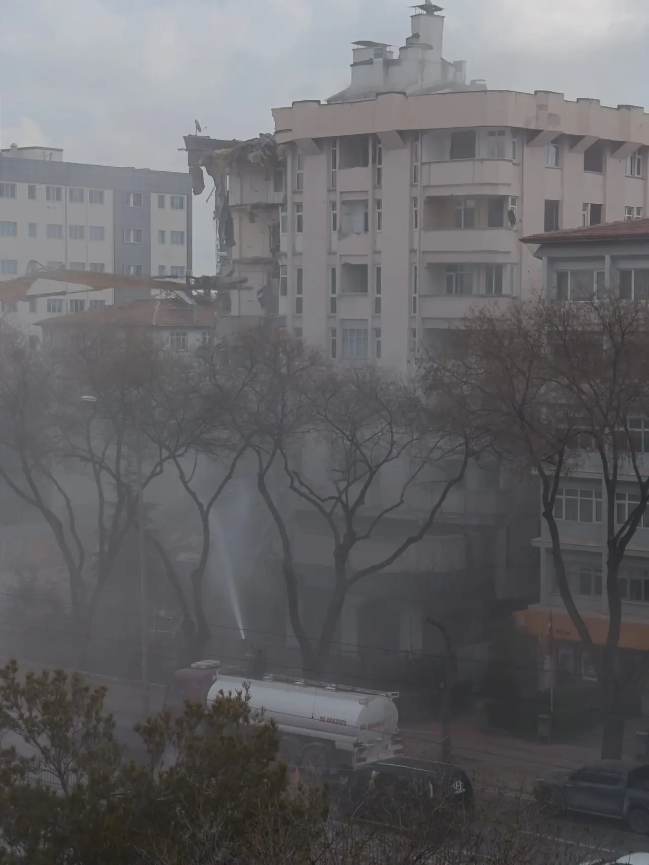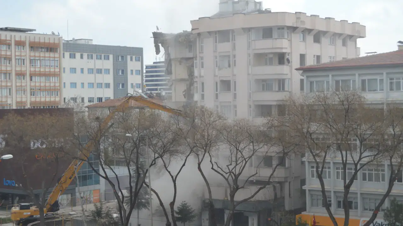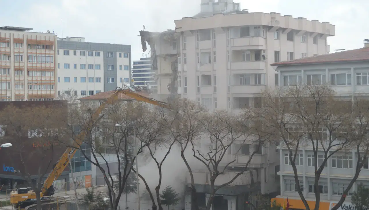 Eski binanın yıkım çalışmaları öğle saatlerinde başladı. İş makineleriyle gerçekleştirilen kontrollü yıkım sırasında herhangi bir olumsuzluk yaşanmadı.