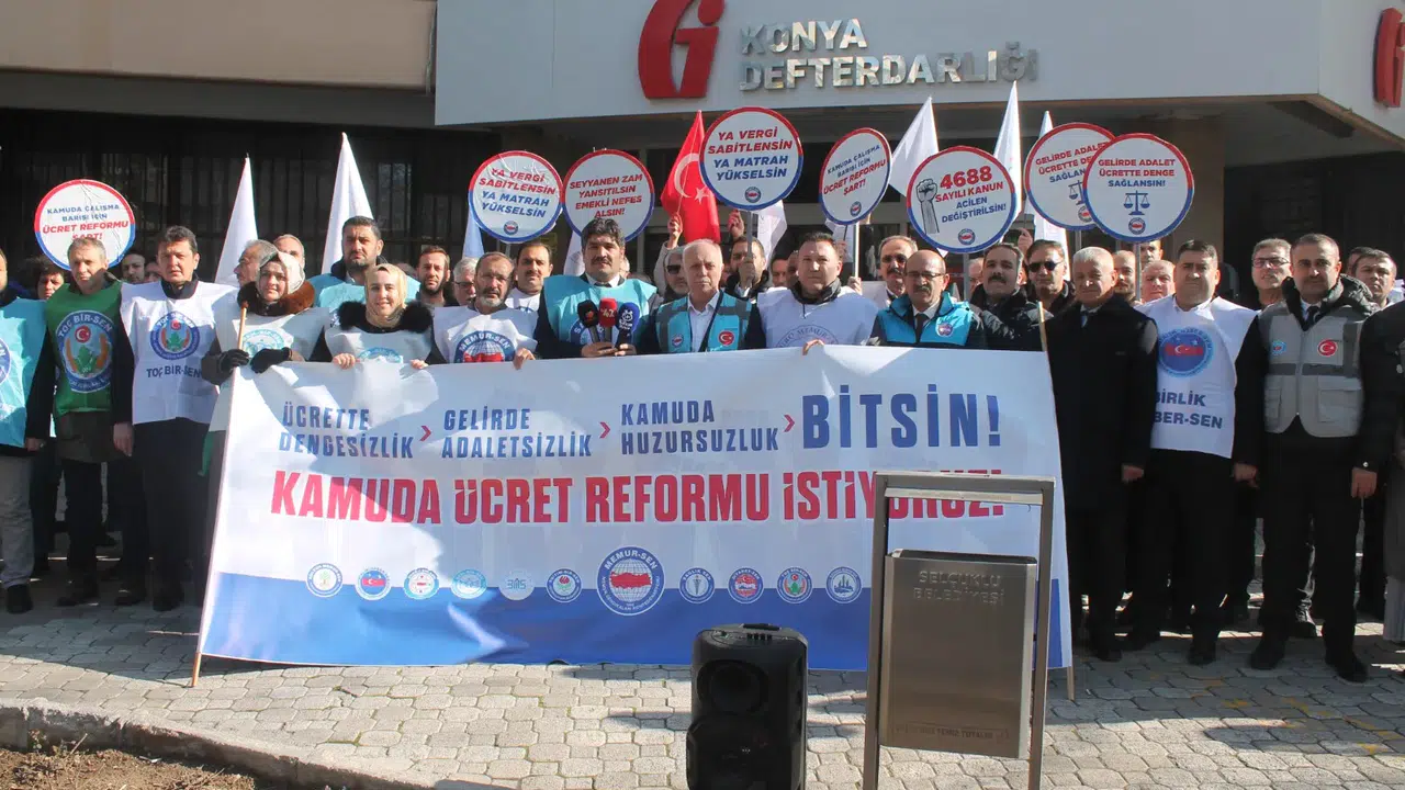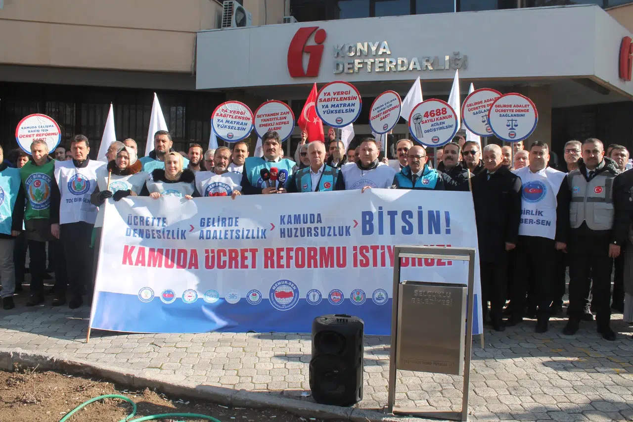 Memur-Sen Konya İl Temsilciliği, kamu çalışanlarının ücret dengesizliği ve gelir adaletsizliğine dikkat çekmek amacıyla Konya’da Maliye binası önünde basın açıklaması gerçekleştirdi. Açıklamayı Memur-Sen Konya İl Temsilcisi Nazif Karlıer yaptı.