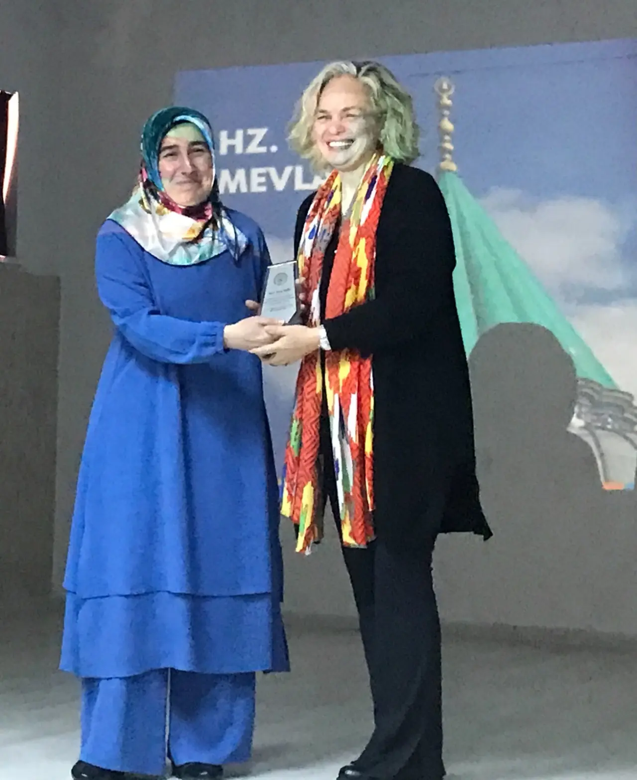 Programın sonunda, etkinliğin hazırlanmasındaki yoğun emeği nedeniyle 3/B Sınıf Öğretmeni Hülya Bağcı'ya plaketi Mevlâna'nın 23. kuşaktan torunu Azra Çelebi Bayru Kumcuoğlu tarafından takdim edildi.