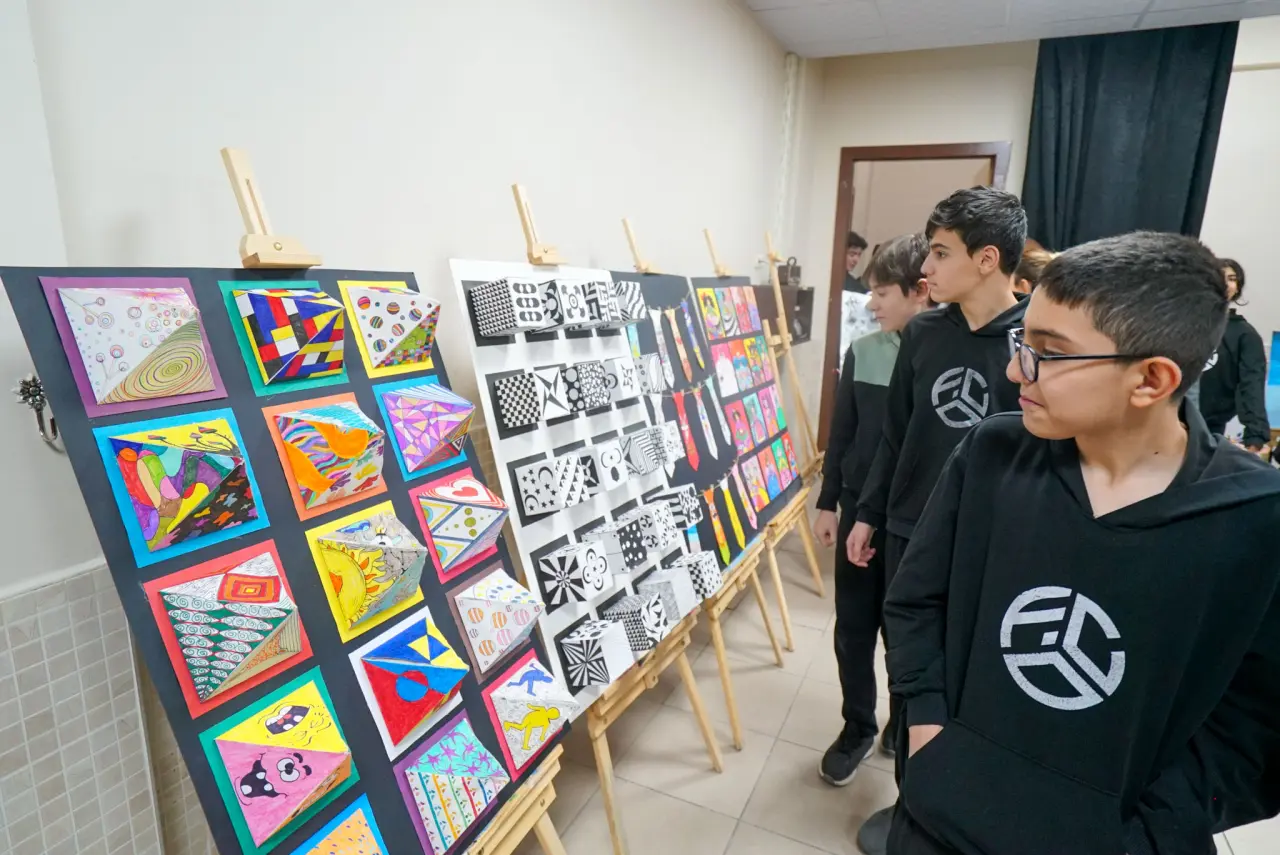 Veliler ve eğitimciler, seminerin sonunda öğrenciler tarafından yapılan ‘Sıfır Atık Sergisi’ni gezdiler.