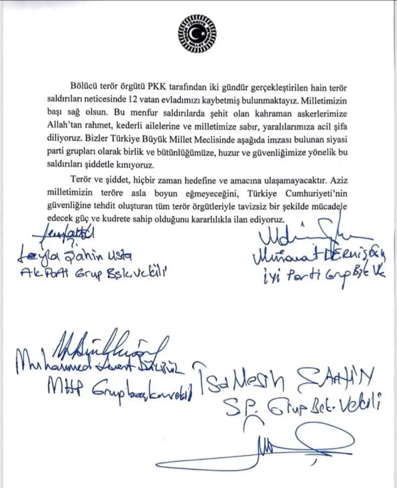 Koçak, Aralık 2023’te Irak’ın kuzeyinde 12 askerin şehit olduğu terör saldırılarının ardından AK Parti ve MHP tarafından hazırlanan, PKK’nın açık şekilde kınandığı ortak bildiriye CHP’nin imza atmadığını vurguladı. Bunun nedeninin, o dönem CHP ile DEM arasında yürütülen “kent uzlaşısı” görüşmeleri olduğunu ifade etti.