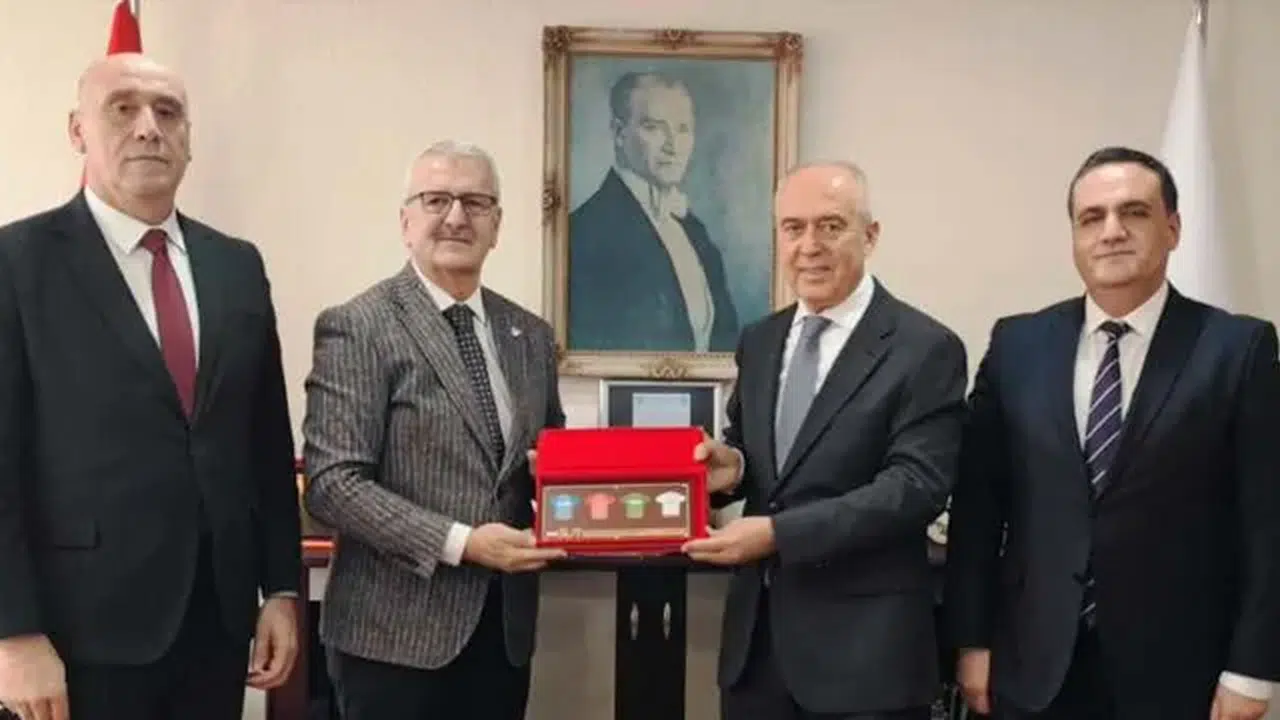 Müftüoğlu’nun Başkan Ay'a TBF katkı plaketi takdim etti.