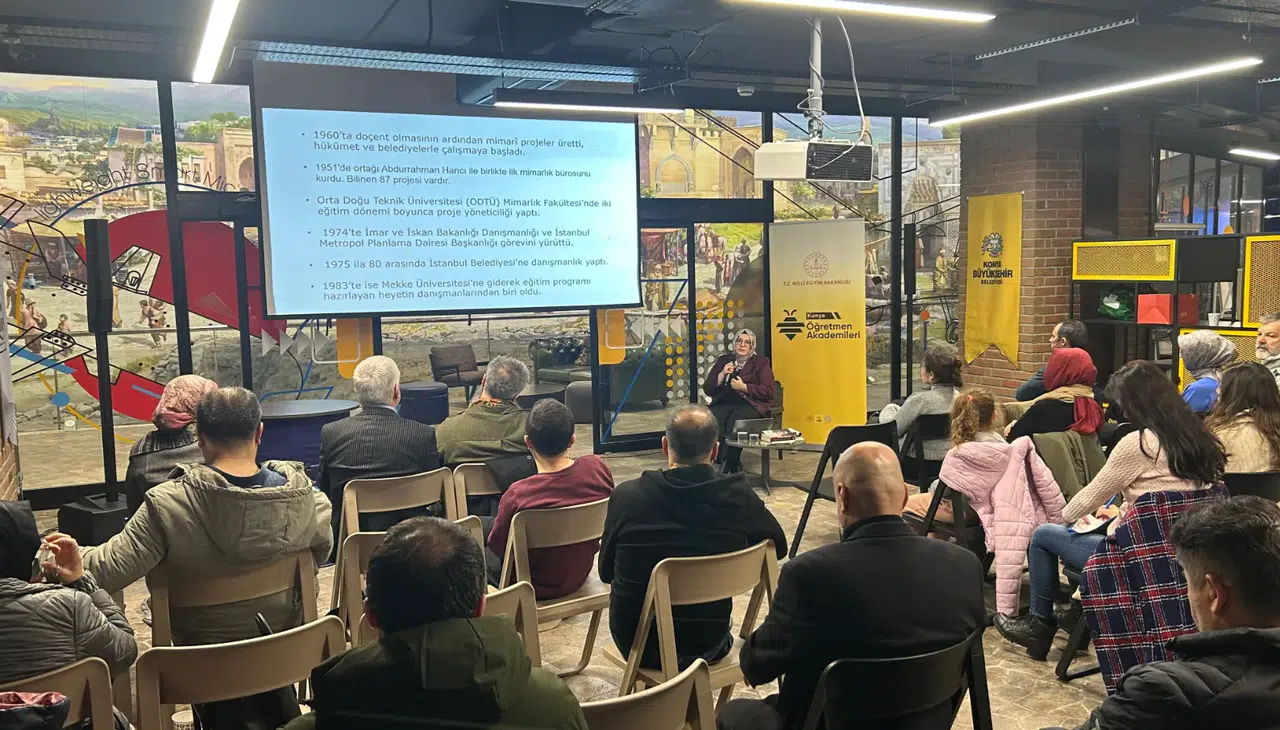 Konya Öğretmen Akademilerine katılan öğretmenler, ülkenin yetiştirdiği ve alanlarında önemli eserler veren kültür ve bilim insanları ile bir araya gelmeyi sürdürüyor.