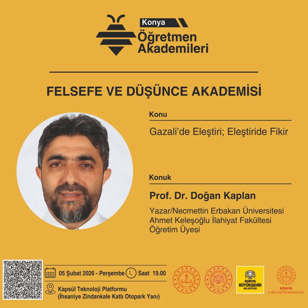 - Felsefe ve Düşünce Akademisinde Necmettin Erbakan Üniversitesi Ahmet Keleşoğlu İlahiyat Fakültesi Öğretim Üyesi Prof. Dr. Doğan Kaplan “Gazali’de Eleştiri; Eleştiride Fikir”