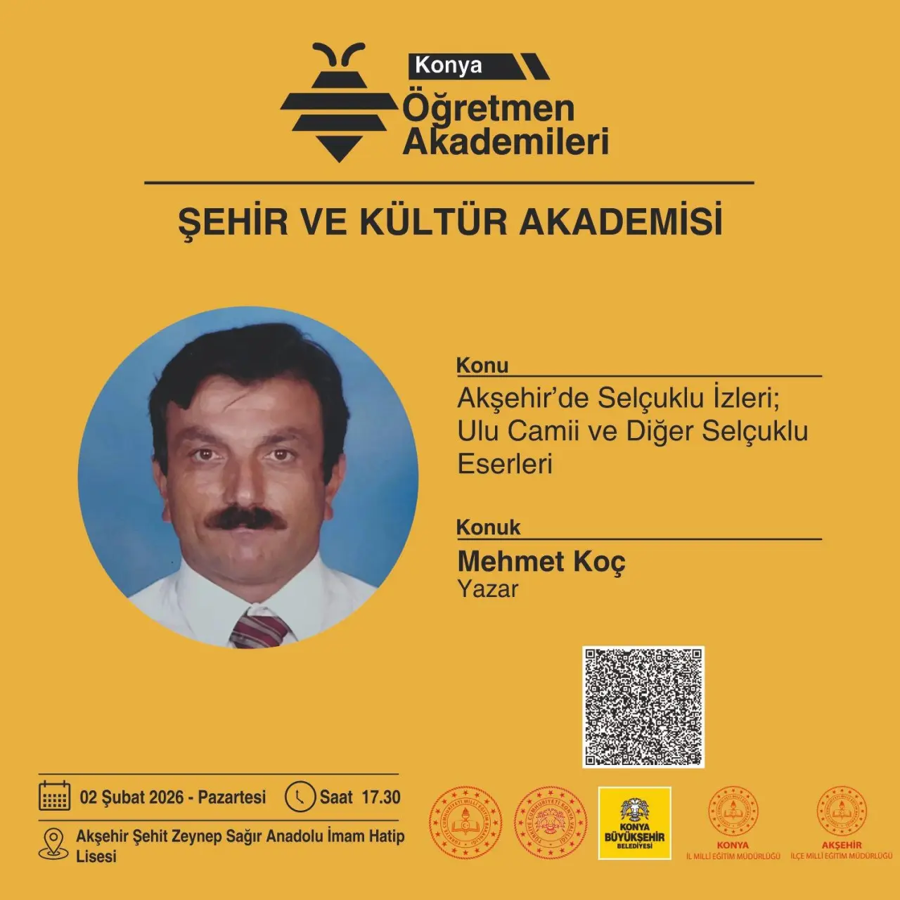 - Şehir ve Kültür Akademisinde Yazar Mehmet Koç “Akşehir’de Selçuklu İzleri; Ulu Camii ve Diğer Selçuklu Eserleri”