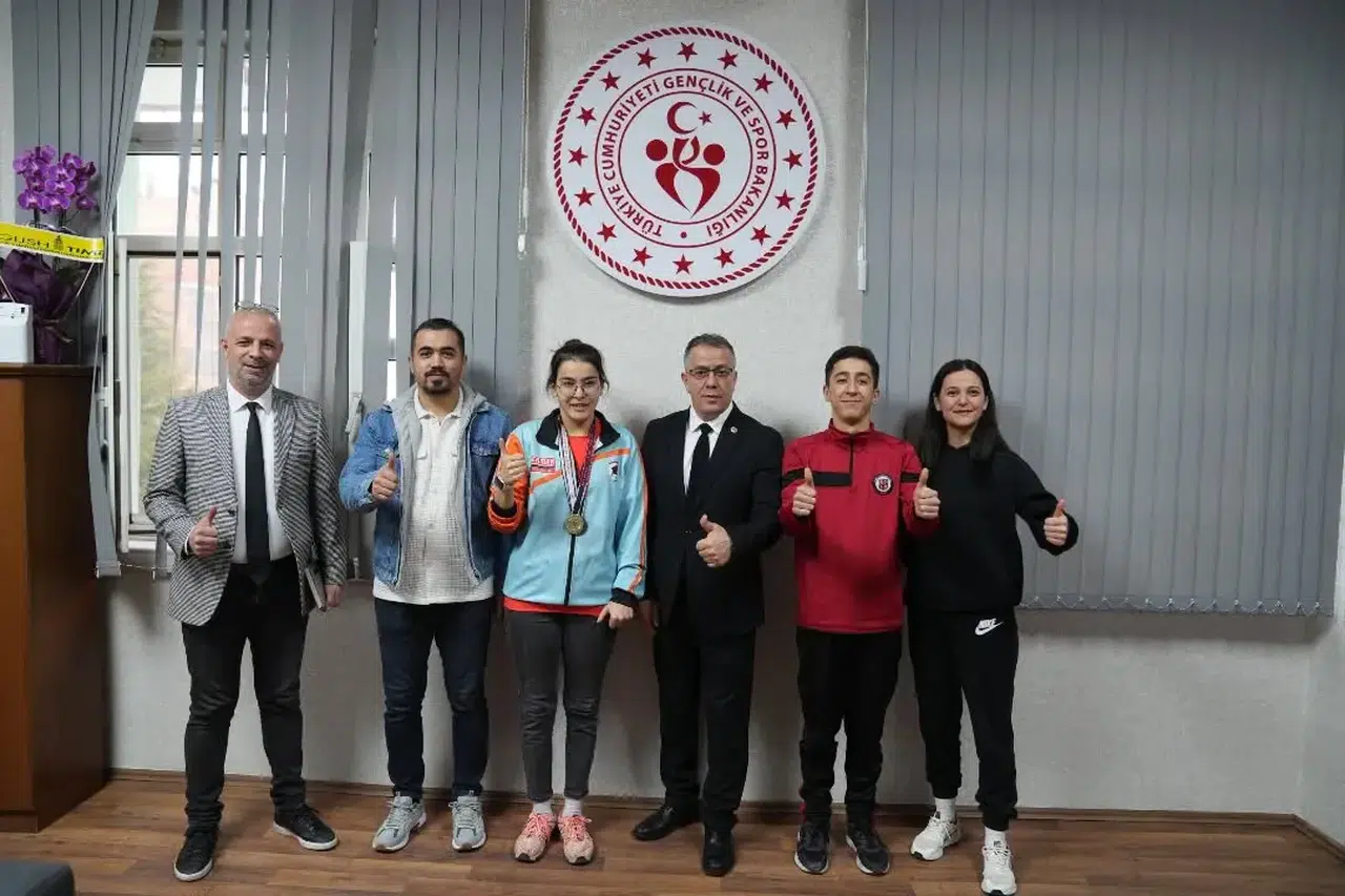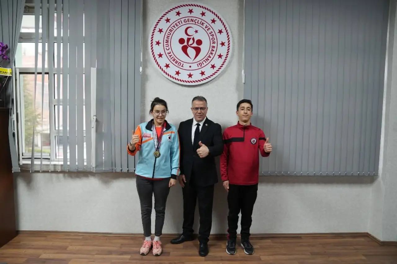 Paralimpik Virtus Yüzme Milli Takım Seçme Yarışları’nda derece elde ederek önemli bir başarıya imza atan özel sporcular Alper Akgül ve Merve Hallıoğlu, Konya Gençlik ve Spor İl Müdürü Muzaffer Çintimar’ı ziyaret etti.