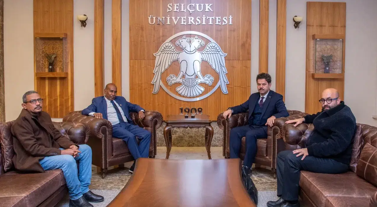 Selçuk Üniversitesi Rektörü Prof. Dr. Hüseyin Yılmaz, Sudan Bahri Üniversitesi Rektörü Prof. Dr. Hatim Rahamtalla Mohammed Ahmed, Kurumsal İletişim Direktörü Yasir Musa ve Sudan Eğitim Müşaviri Doç. Dr. Gökhan Bozbaş’ı Selçuk Üniversitesi’nde ağırladı.