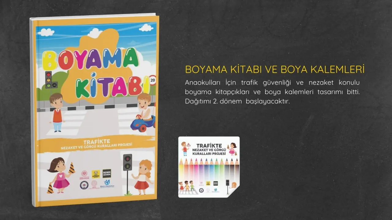 Okul öncesi öğrencileri için hazırlanan boyama kitapçıkları ve boya kalemlerinin tasarımı tamamlanarak, bu dönem öğrencilere dağıtımı yapılacak.