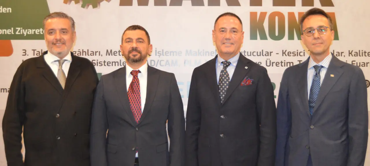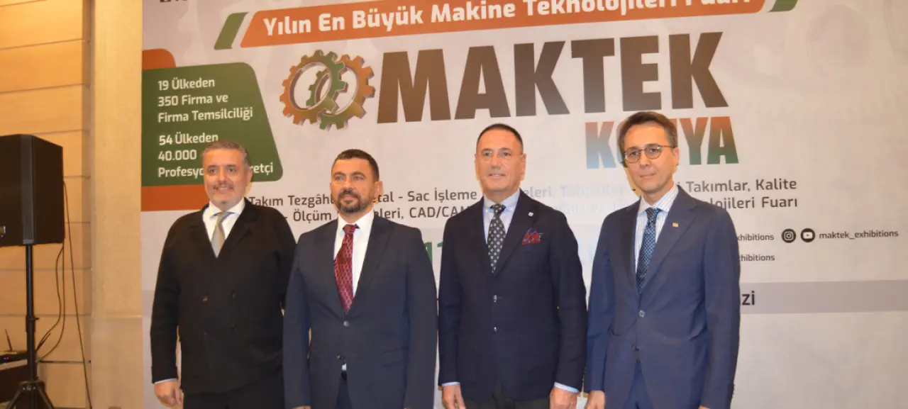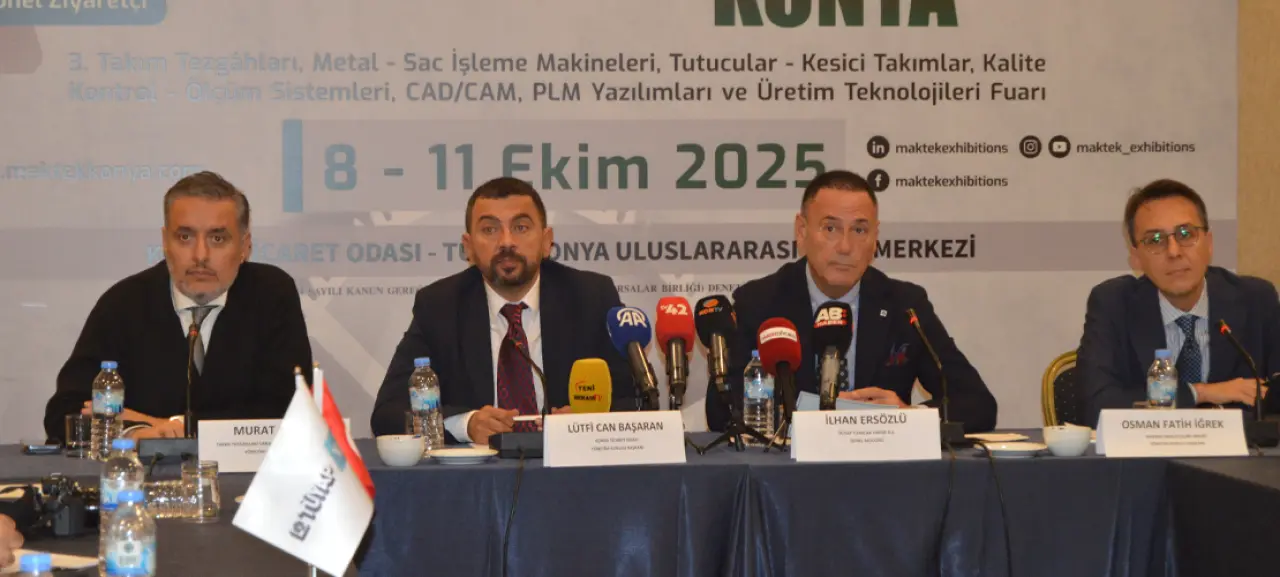 MAKTEK Konya 2025 Fuarı ile ilgili Dedeman Hotel’de düzenlenen basın toplantısına Tüyap Fuarlar Yapım A.Ş. Genel Müdürü İlhan Ersözlü, Konya Ticaret Odası Yönetim Kurulu Başkan Yardımcısı Lütfi Can Başaran, Makina İmalatçıları Birliği Yönetim Kurulu Başkanı Osman Fatih İğrek ve Takım Tezgahları Sanayici ve İş İnsanları Derneği Yönetim Kurulu Başkanı Murat Akyüz katıldı.