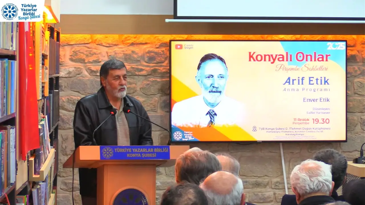 Programın açılış konuşmasını yapan ve Arif Etik’in biyografisi hakkında bilgi veren Saffet Yurtsever’in ardından kürsüye çıkan