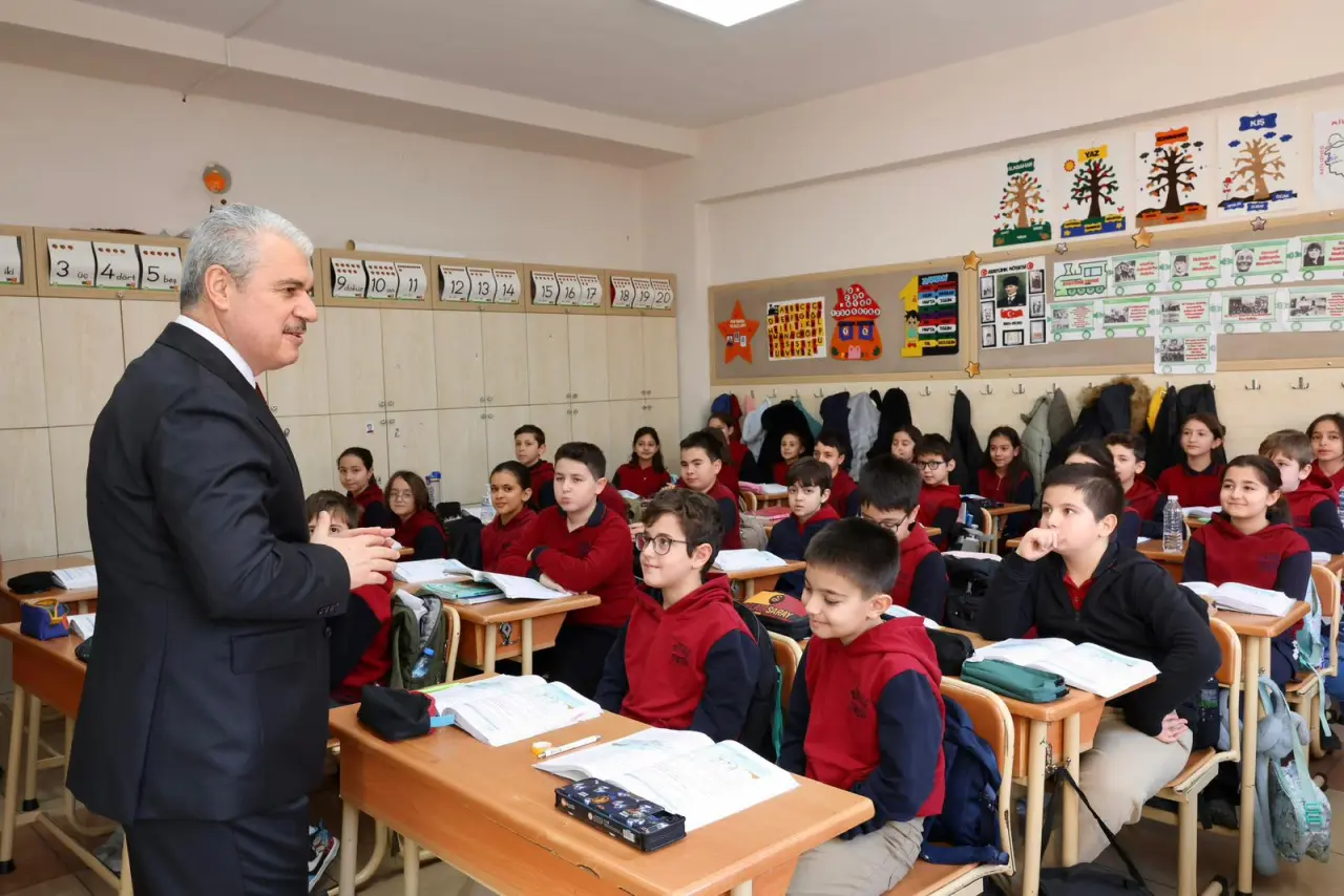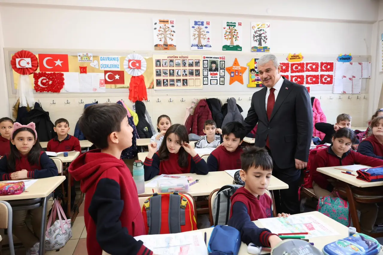Öğrencilerle bir araya gelen Vali Akın, öğretmen ve idarecilere çalışmalarında başarılar diledi.