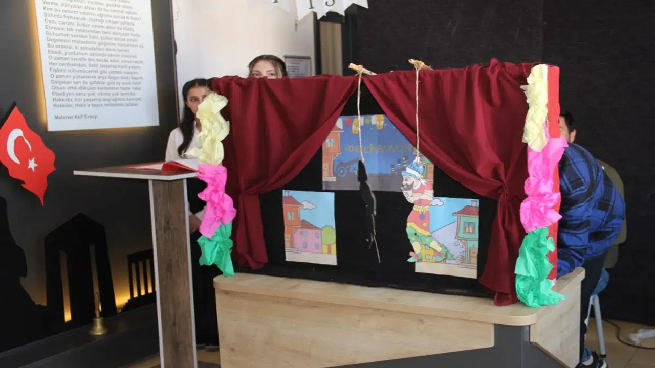 Yalıhüyük Anadolu Lisesi'nde düzenlenen programda, tiyatro gösterisi ve Hacivat-Karagöz oyunu sergilendi.