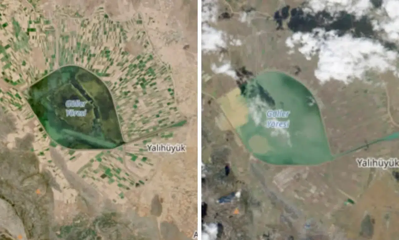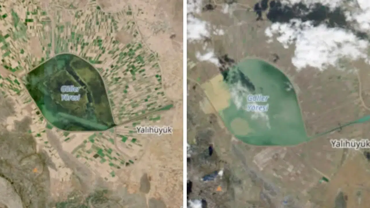Amatör hava tahmincisi Kuttusi Demir’in paylaştığı görüntülerde göldeki değişim net şekilde görülüyor. İlk fotoğrafta yaz döneminde büyük oranda çekilen göl seviyesi dikkat çekerken, son yağışların ardından çekilen ikinci karede su seviyesindeki belirgin yükseliş gözler önüne seriliyor.