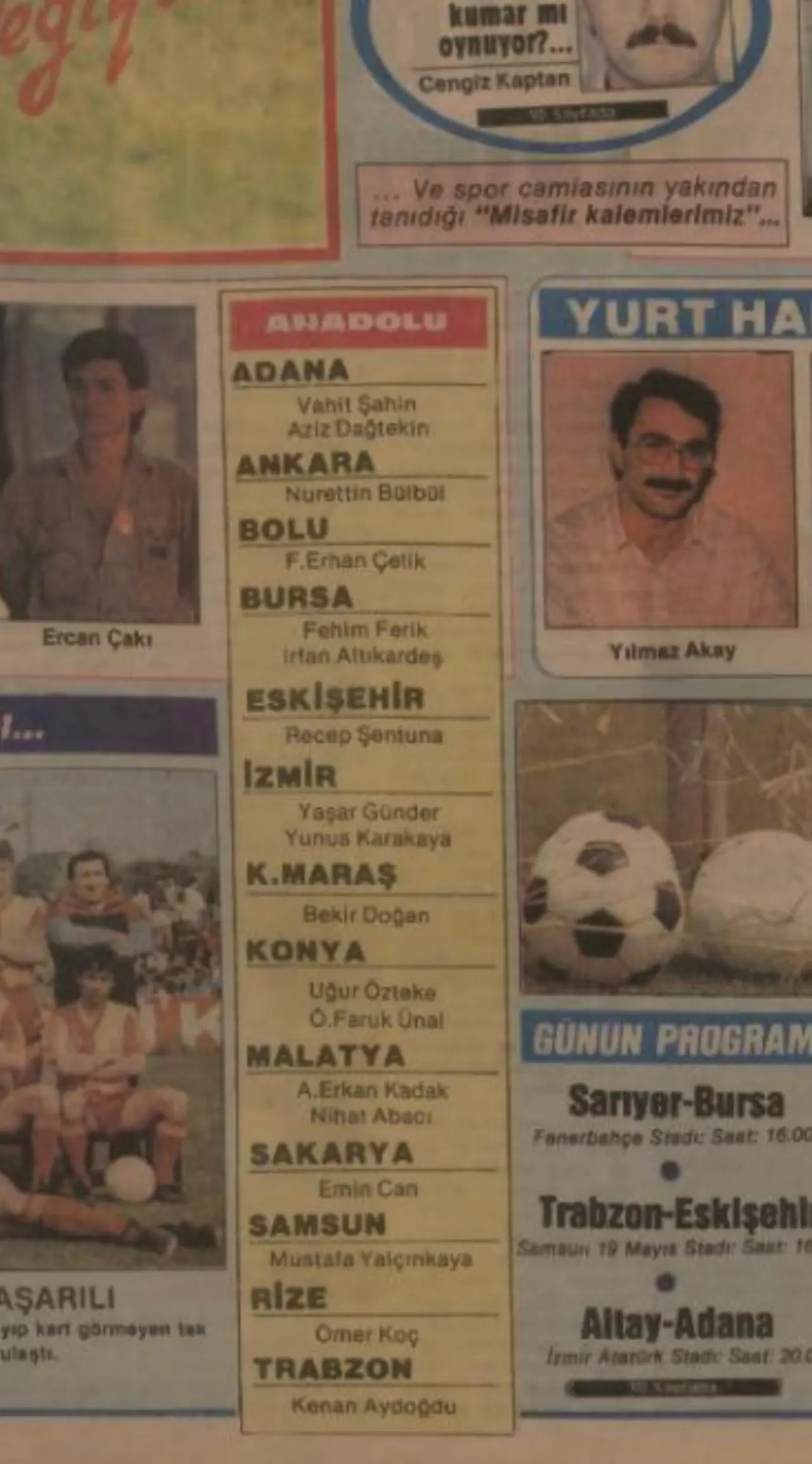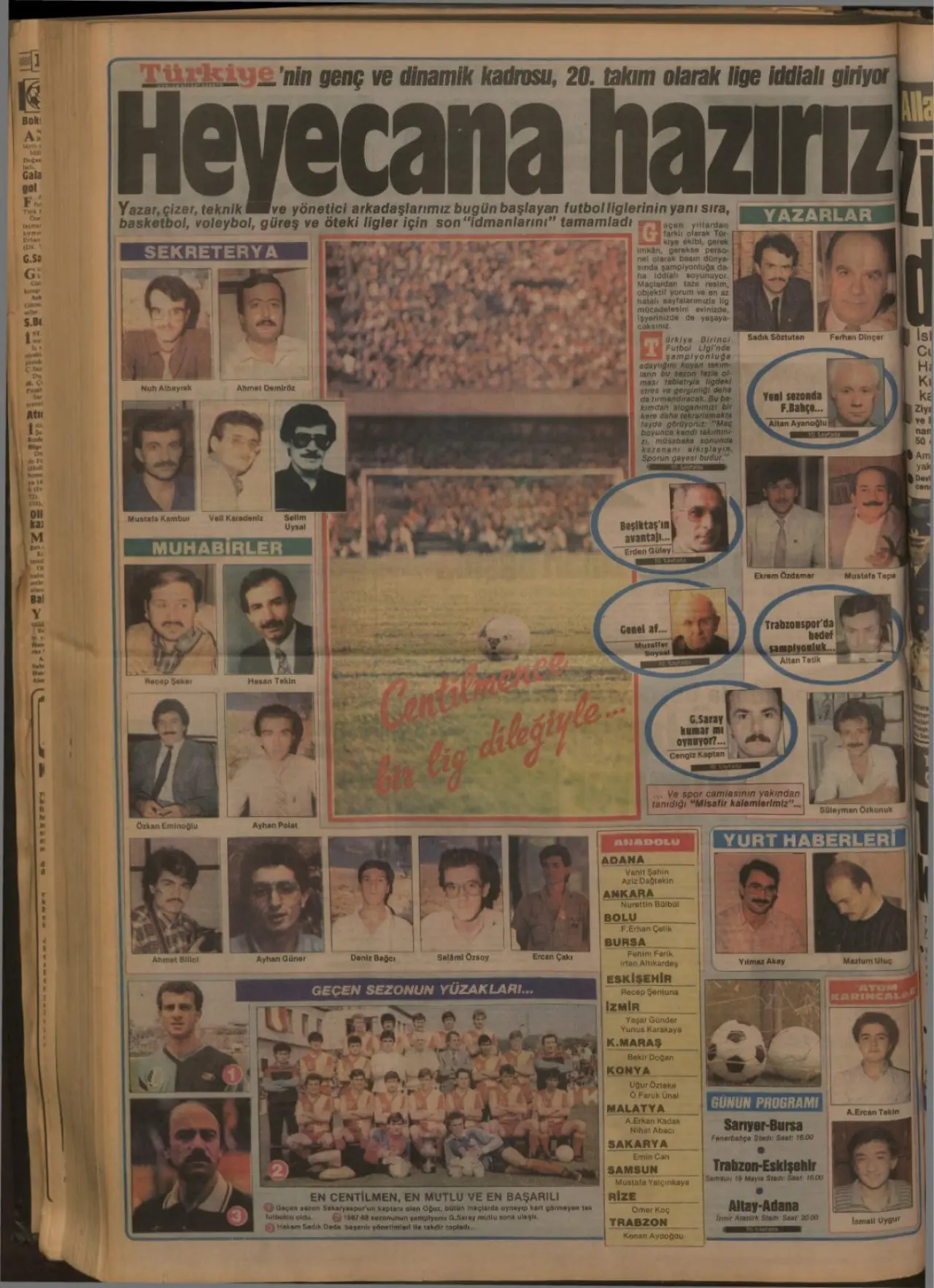Bursa’daki gazeteci dostum 50 yıllık kardeşim Fehim Ferik 1988 yılı TÜRKİYE Gazetesi spor servisinin yeni sezon öncesi Spor yazarları kadrosunun tam sayfa yayınladığı sayfayı iki gün önce bize gönderiyordu.