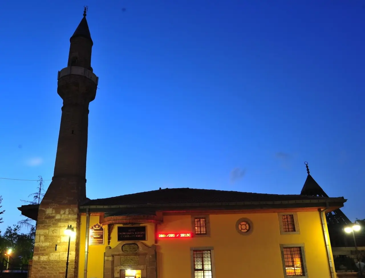 Sadreddin Konevi Türbesi’nin önüne yanaşıp arabalardan indik. Şadırvan, lavabolar ve türbe etrafının temizliği ile ilgilenen ve ziyaretçilerin gönlünden ne koparsa verdikleri cami derneği görevlisi, bizi fark edip kalabalık bir grup ile geldiğimizi de görünce hızla gelip kapalı olan türbe kapısını açarak içeriye buyur etti.